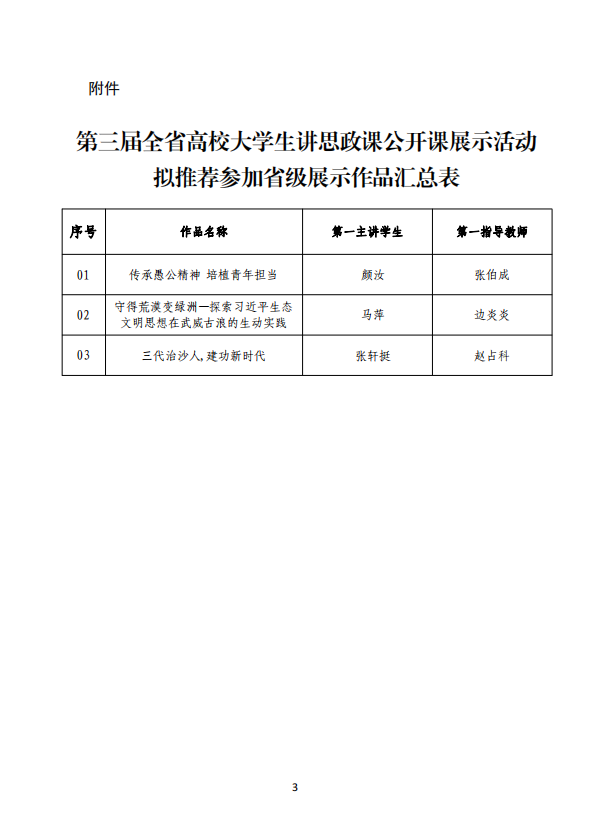 關(guān)于武威職業(yè)學(xué)院第三屆全省高校大學(xué)生講思政課公開課展示活動評選結(jié)果的公示