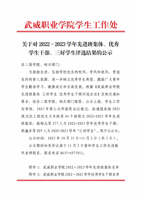 關于對2022-2023學年先進班集體、優(yōu)秀學生干部、三好學生評選結(jié)果的公示
