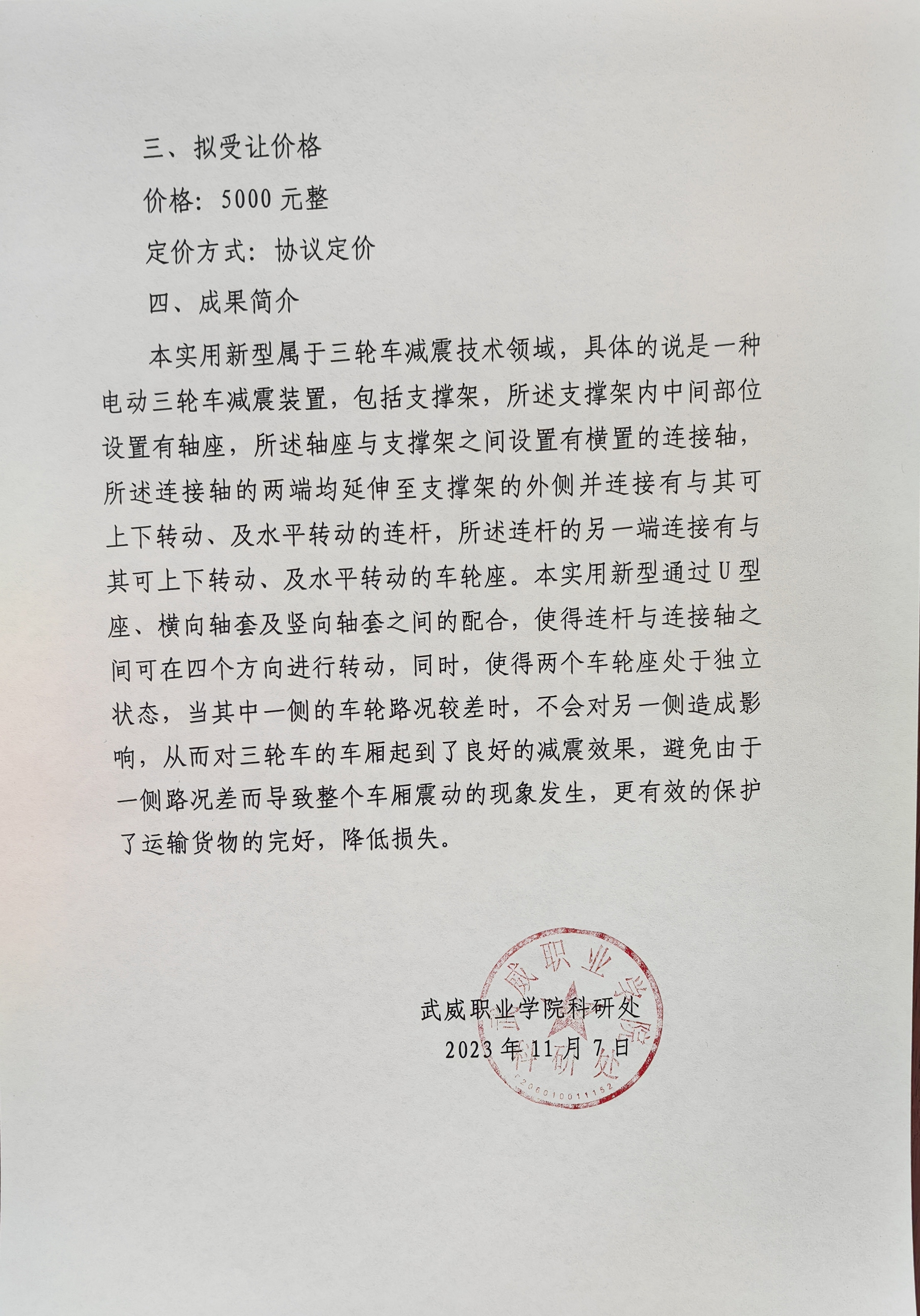 關于武威職業(yè)學院待轉(zhuǎn)化科技成果的公示