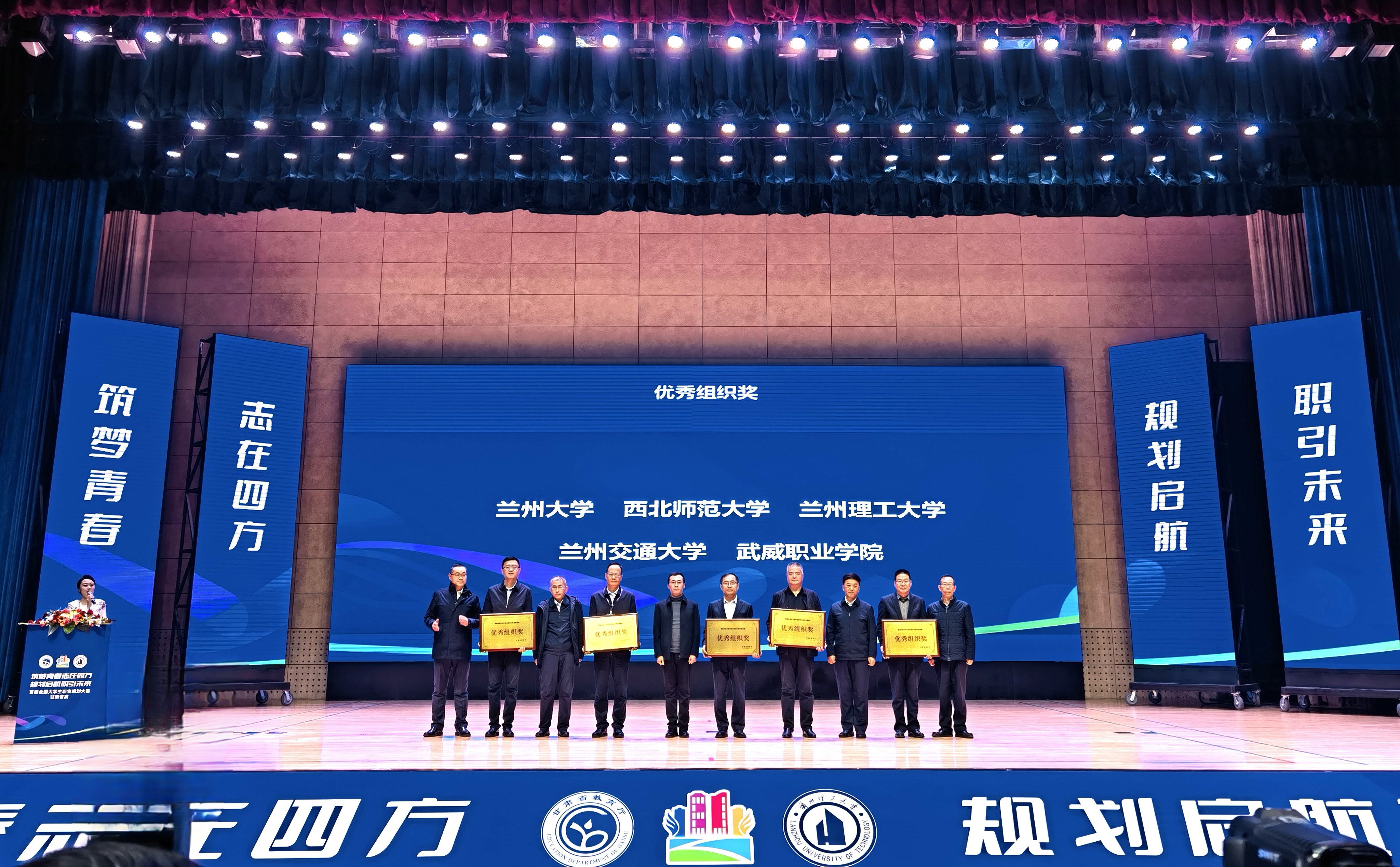 11月17日上午,“筑夢(mèng)青春志在四方,規(guī)劃啟航職引未來(lái)”—首屆全國(guó)大學(xué)生職業(yè)規(guī)劃大賽甘肅省賽閉幕式暨頒獎(jiǎng)儀式在蘭州理工大學(xué)體育館舉行。我校黨委委員、副校長(zhǎng)王守云,招生就業(yè)處負(fù)責(zé)人董鵬帶隊(duì)參加閉幕式暨頒獎(jiǎng)儀式。在職教組省級(jí)決賽中,兩個(gè)賽道分別設(shè)金獎(jiǎng)5項(xiàng),銀獎(jiǎng)10項(xiàng),銅獎(jiǎng)15項(xiàng)。我校代表隊(duì)榮獲金獎(jiǎng)2項(xiàng)、銀獎(jiǎng)4項(xiàng)、銅獎(jiǎng)4項(xiàng),獲獎(jiǎng)作品數(shù)目為全省第一。其中,經(jīng)濟(jì)管理學(xué)院2022級(jí)旅游管理專(zhuān)業(yè)學(xué)生顏汝榮獲成長(zhǎng)賽道金獎(jiǎng)第一名,并在閉幕式上作匯報(bào)展演。
