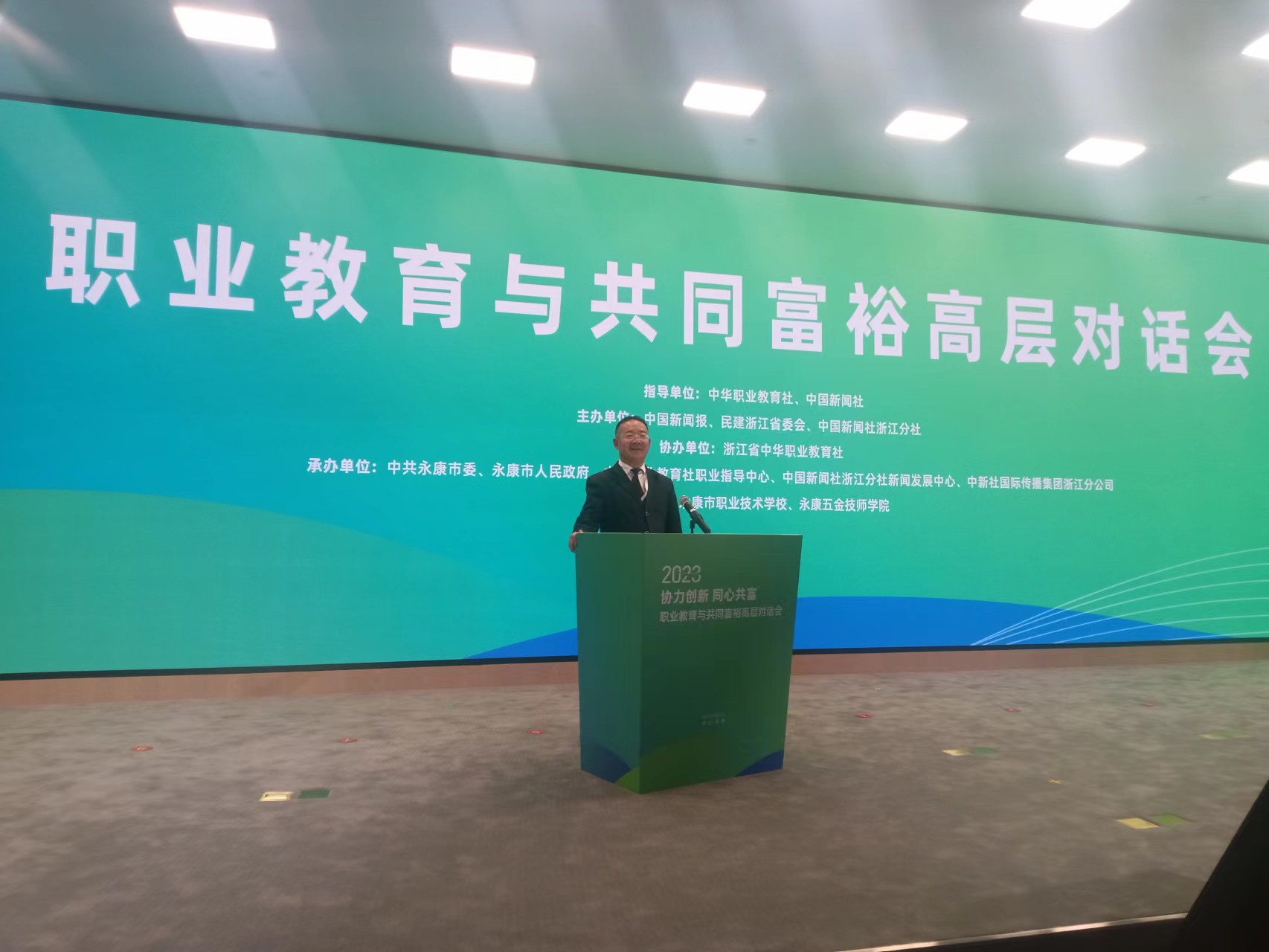 10月26日至27日,職業(yè)教育與共同富裕高層對(duì)話(huà)會(huì)在浙江金華永康市舉行。會(huì)議以“協(xié)力創(chuàng)新 同心共富”為主題,由中華職業(yè)教育社、中國(guó)新聞社指導(dǎo),中國(guó)新聞報(bào)、民建浙江省委會(huì)和中國(guó)新聞社浙江分社主辦,浙江省中華職業(yè)教育社協(xié)辦。全國(guó)人大常委會(huì)副委員長(zhǎng)、中華職業(yè)教育社理事長(zhǎng)郝明金,浙江省政協(xié)副主席、浙江省中華職業(yè)教育社主任陳小平出席會(huì)議,國(guó)內(nèi)職業(yè)教育領(lǐng)域?qū)<?、學(xué)者及職業(yè)院校、行業(yè)協(xié)會(huì)、學(xué)術(shù)機(jī)構(gòu)代表等約300人圍繞東西協(xié)作、產(chǎn)教融合等議題展開(kāi)深入探討。