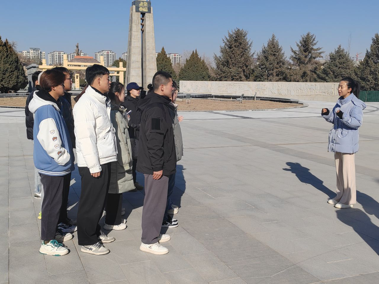 11月24日在4A級景區(qū)雷臺漢墓景區(qū)的馬踏飛燕前,武威職業(yè)學(xué)院2022級旅游管理專業(yè)大專班的學(xué)生正在進行景區(qū)模擬講解活動。一名學(xué)生在企業(yè)兼職教師呂龍梅的指導(dǎo)下,認真地為大家進行講解,這是一次特別的教學(xué)活動——將一堂完整的專業(yè)課程搬到景區(qū)進行,通過實踐學(xué)習(xí)深化專業(yè)知識和技能。