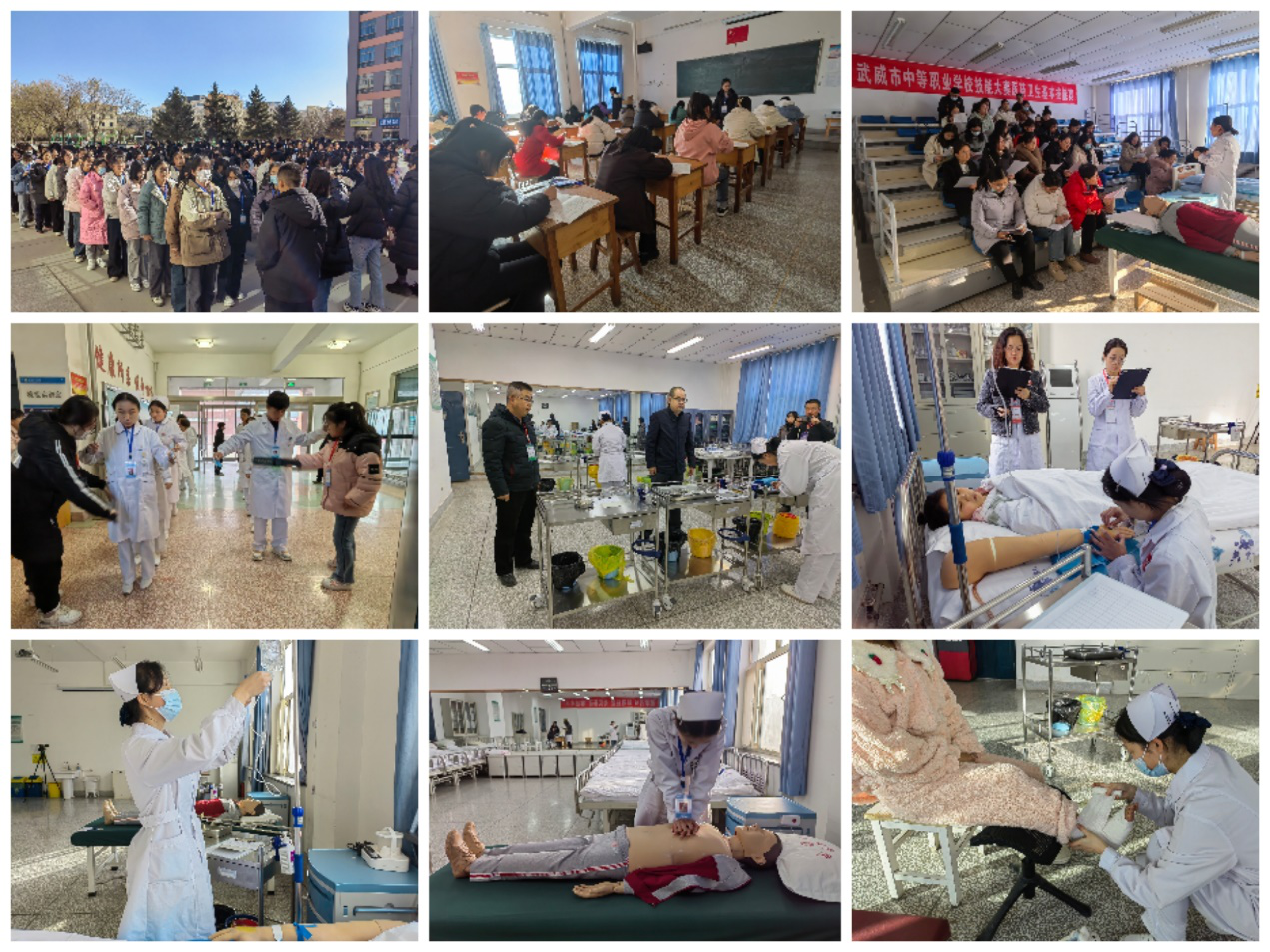 12月4日至8日,2024年武威市中等職業(yè)學(xué)校技能大賽護理技能賽項在學(xué)校卓行樓如期舉行,來自全市4所中等職業(yè)院校的675名選手參加了比賽。比賽設(shè)置理論考試和技能考試兩項內(nèi)容,技能考試包括心肺復(fù)蘇、靜脈輸液、右踝關(guān)節(jié)包扎三項護理技能操作。