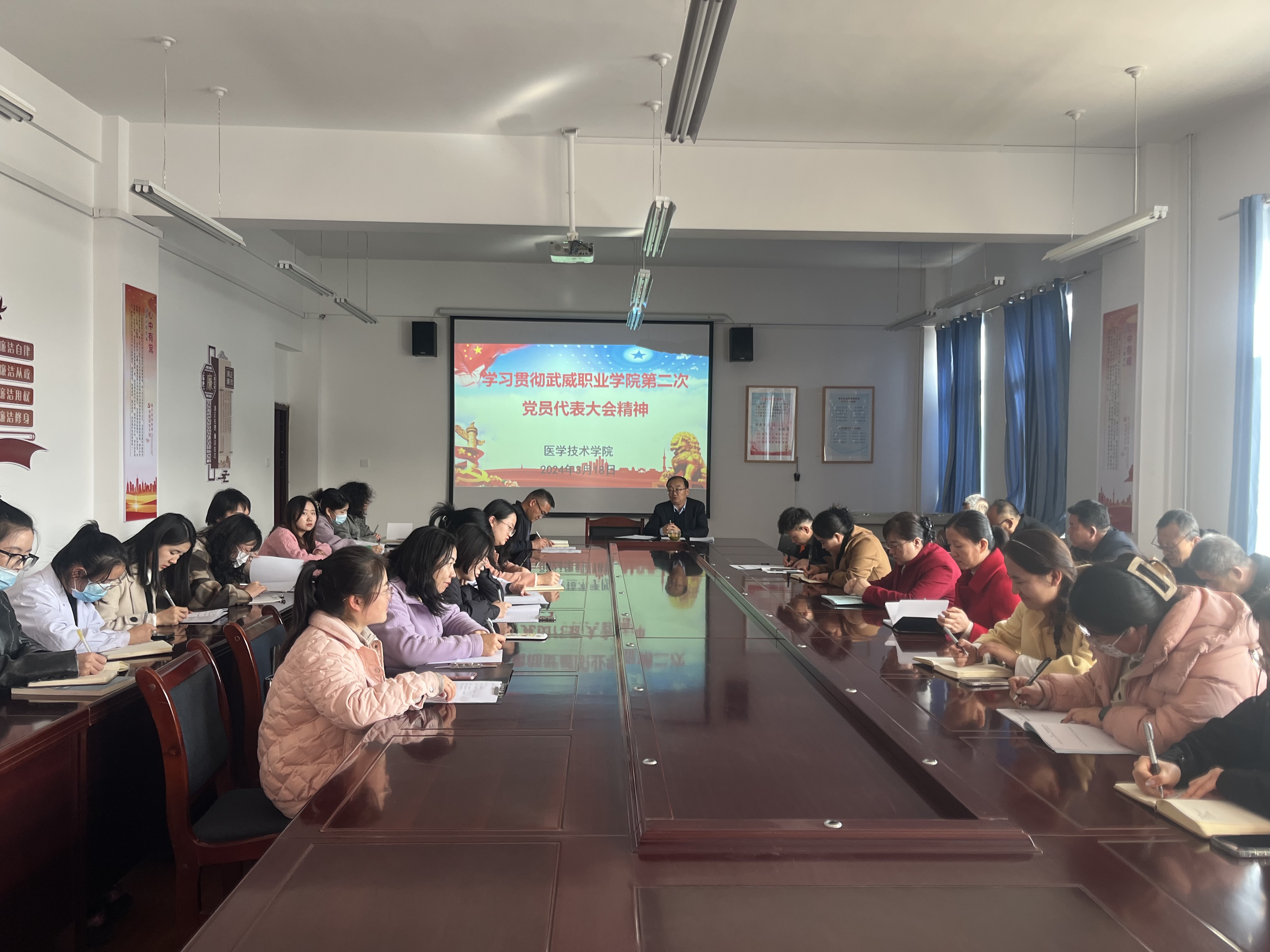 3月13日,中國共產(chǎn)黨武威職業(yè)學(xué)院第二次代表大會在我校召開。為學(xué)習(xí)貫徹會議精神,3月18日下午,醫(yī)學(xué)技術(shù)學(xué)院召開全體教職工會議傳達(dá)學(xué)校第二次代表大會精神,會議以“學(xué)習(xí)貫徹中國共產(chǎn)黨武威職業(yè)學(xué)院第二次代表大會精神”為主題,結(jié)合醫(yī)學(xué)技術(shù)學(xué)院實(shí)際提出落實(shí)舉措。