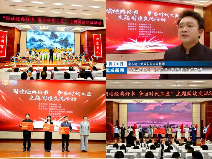 4月23日,由省總工會主辦、市總工會承辦,武威職業(yè)學(xué)院協(xié)辦的“閱讀經(jīng)典好書爭當(dāng)時代工匠”主題讀書交流活動在菁英廳隆重舉行。省總工會三級調(diào)研員馬艷,市總工會黨組書記、常務(wù)副主席康金蓮,學(xué)校黨委副書記翟存祥出席活動。全市職工書屋、便利型職工閱讀站點、勞模書架建設(shè)單位工會負(fù)責(zé)人,市、縣區(qū)總工會干部職工230多人參加活動。
