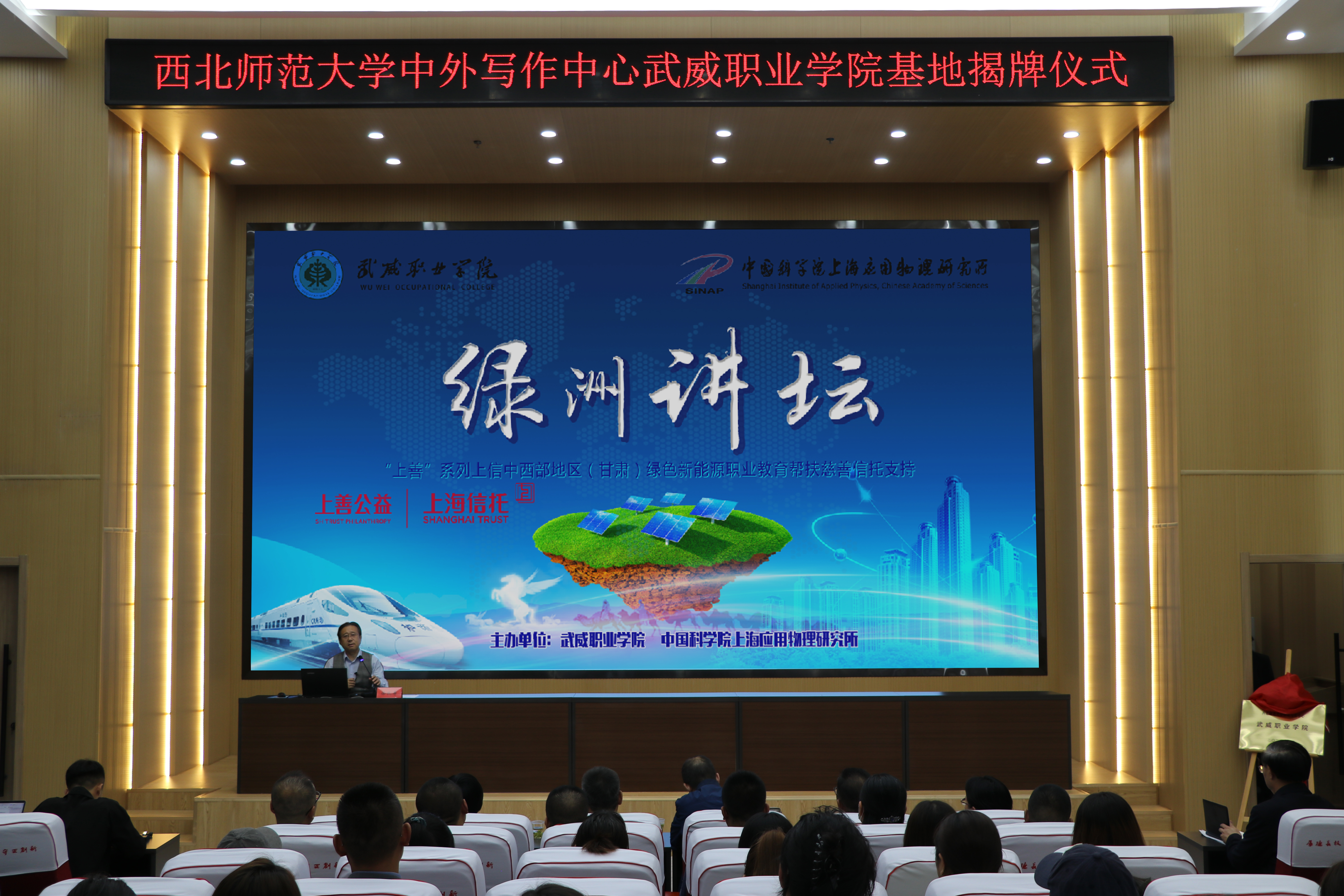 5月28日下午,西北師范大學(xué)中外寫(xiě)作中心武威職業(yè)學(xué)院基地揭牌儀式暨報(bào)告會(huì)在武威職業(yè)學(xué)院能源科技樓一樓學(xué)術(shù)報(bào)告廳隆重舉行。