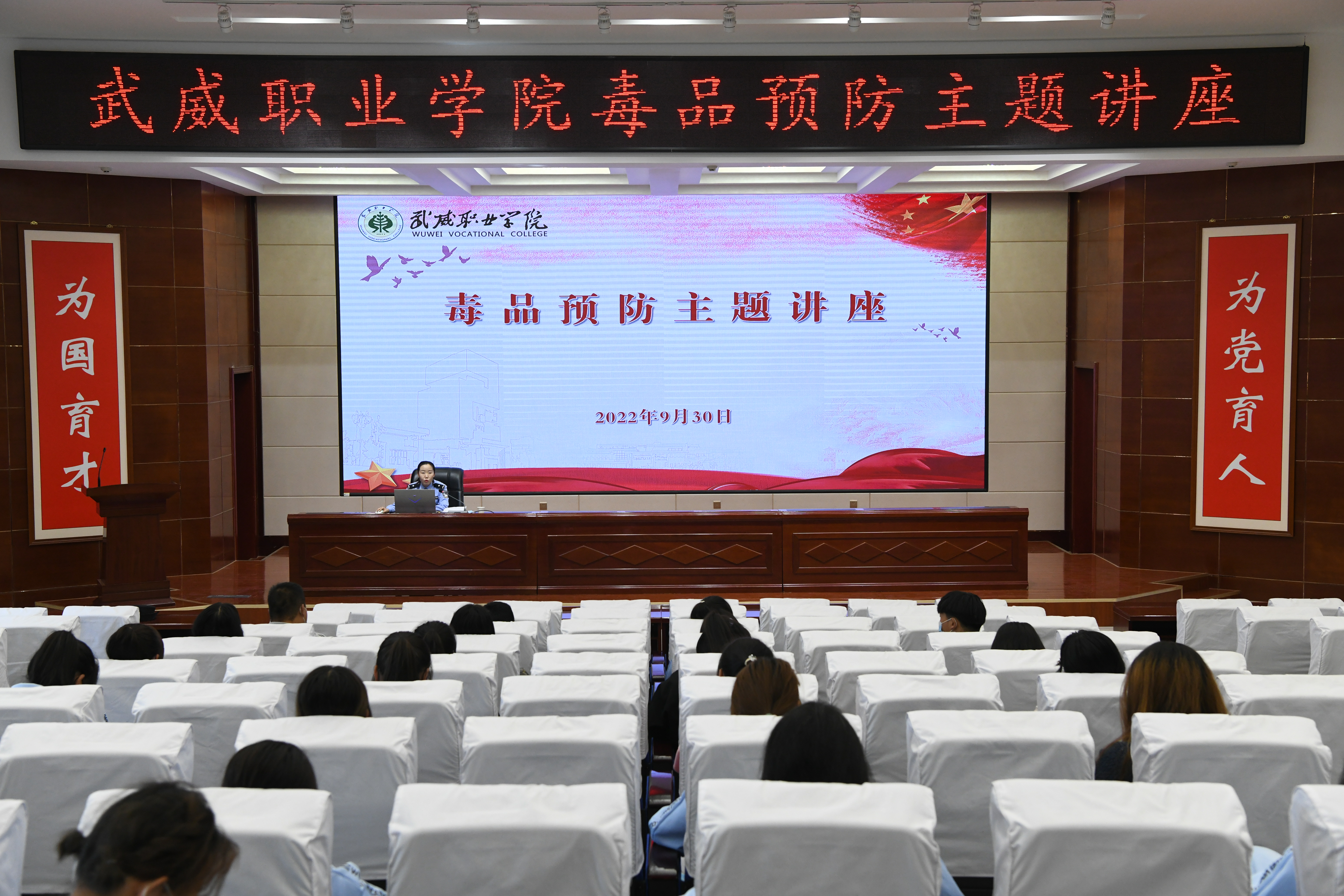 為進一步加強學(xué)校毒品預(yù)防教育工作,不斷提高師生識毒、防毒、拒毒意識,9月30日,學(xué)校安全保衛(wèi)處邀請武威市公安局涼州分局西關(guān)派出所民警王敏同志在學(xué)生發(fā)展中心菁英廳開展“健康人生 綠色無毒”預(yù)防毒品主題講座,各二級學(xué)院師生代表聆聽了講座,講座由安全保衛(wèi)處負(fù)責(zé)人李欣主持。