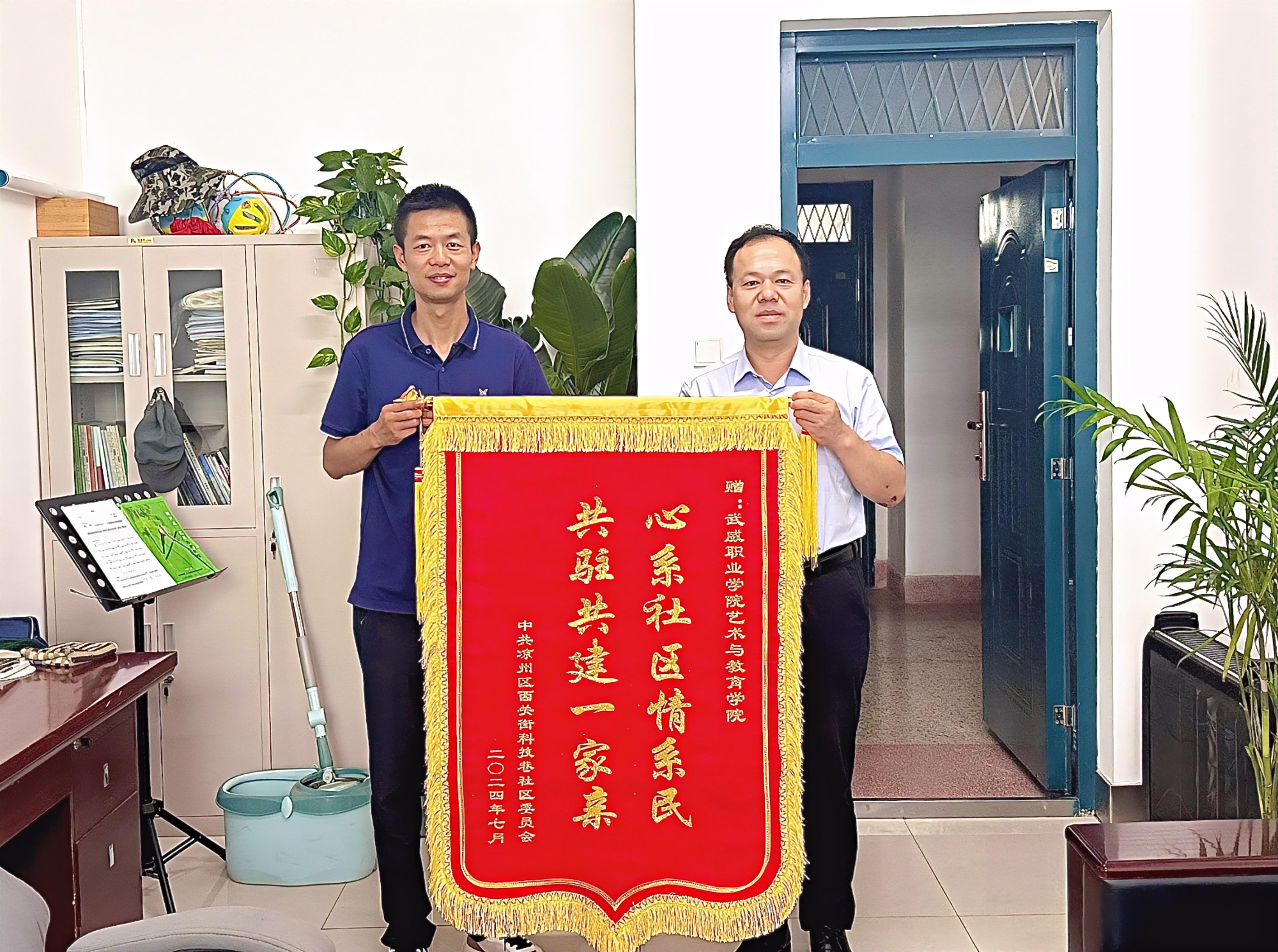 一份榮譽(yù),一份信任,一份鼓勵(lì)。此次贈旗是對我院在西關(guān)科技巷社區(qū)開展社會實(shí)踐活動成果的充分肯定,有助于進(jìn)一步調(diào)動學(xué)生參與社會實(shí)踐活動的積極性,教育引導(dǎo)學(xué)生在社會課堂中“受教育、展才干、作貢獻(xiàn)”。下一步,我院將深入推進(jìn)學(xué)生志愿服務(wù)活動,為基層社會治理和文明武威高質(zhì)量發(fā)展添磚加瓦!
