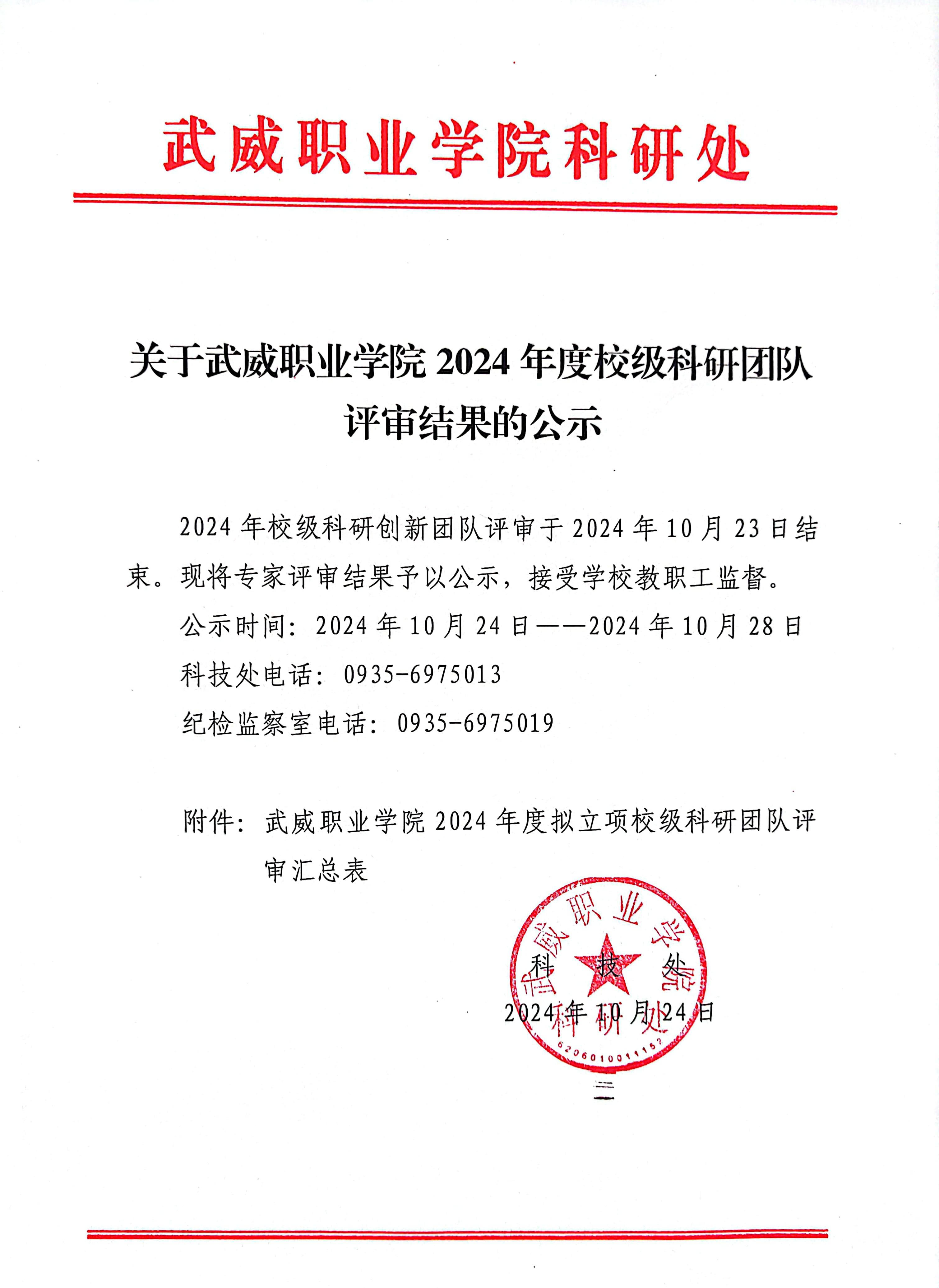 關(guān)于武威職業(yè)學(xué)院2024年度校級(jí)科研團(tuán)隊(duì)評(píng)審結(jié)果的公示