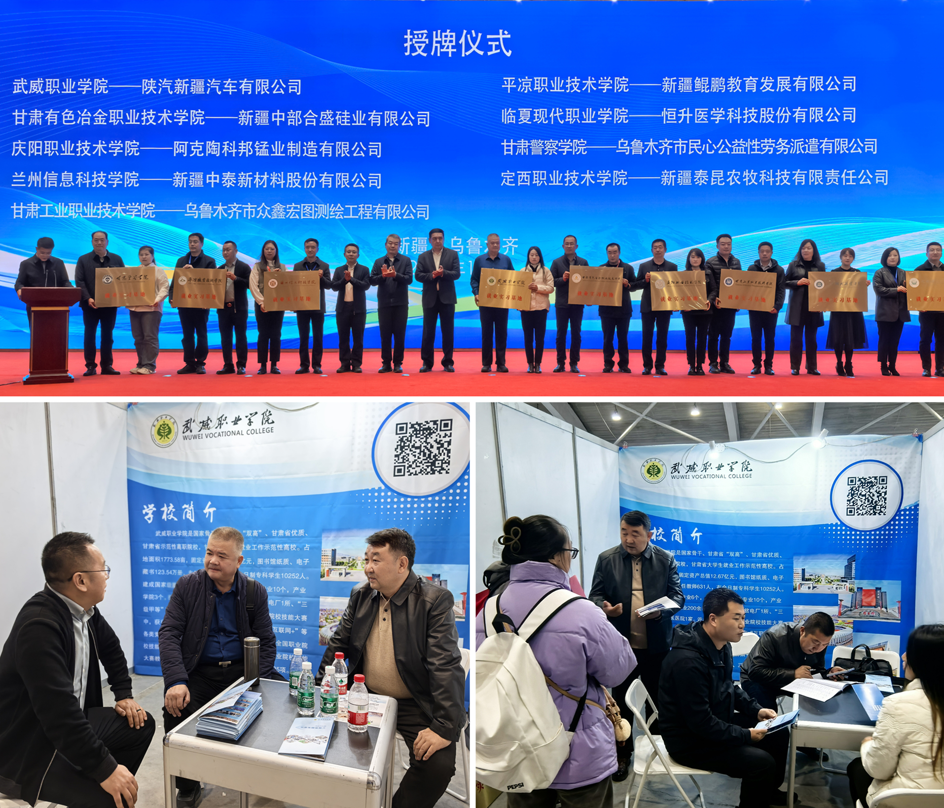11月1日,召開了甘肅省2025屆畢業(yè)生推介會(huì)暨供需對接“政校企”合作座談會(huì)、甘青新蒙四省(區(qū))八市(州盟)“紅石榴促就業(yè)”訪企拓崗座談會(huì),30余家企事業(yè)單位與學(xué)校就人才招聘、校企合作等方面的內(nèi)容進(jìn)行了深入交流。在“政校企”合作座談會(huì)上,王守云為陜汽新疆汽車有限公司授予武威職業(yè)學(xué)院實(shí)習(xí)就業(yè)基地牌匾。