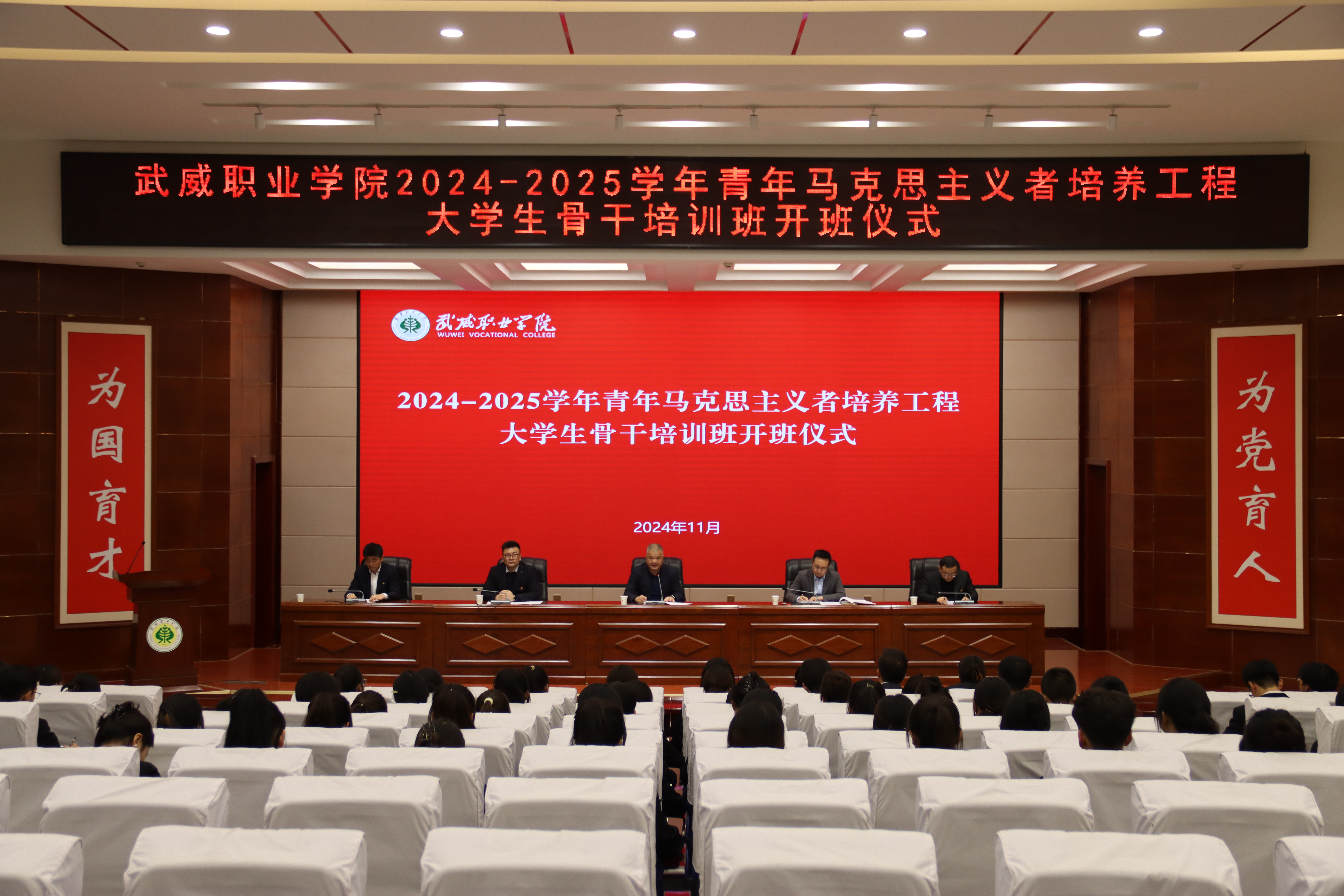 11月28日下午,學(xué)校青年馬克思主義者培養(yǎng)工程2024-2025學(xué)年大學(xué)生骨干培訓(xùn)班在菁英廳舉行開班儀式。學(xué)校黨委委員、副校長王守云出席開班儀式并講話,黨委委員、組織人事處處長任陶出席活動。儀式由校團(tuán)委書記高鵬堂主持。