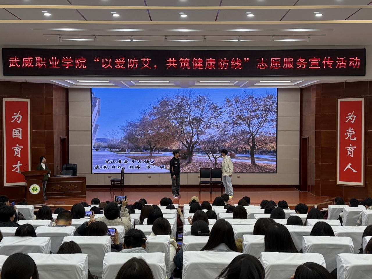 12月1日是第37個“世界艾滋病日”。為普及艾滋病防治知識,進(jìn)一步增強廣大青年學(xué)子的自我防護(hù)意識與能力,促進(jìn)身心健康發(fā)展,12月1日下午,校團(tuán)委聯(lián)合護(hù)理學(xué)院邀請武威市疾控中心在學(xué)校菁英廳開展主題為“以愛防艾,共筑健康防線”主題宣傳活動,吸引了200余名師生積極參與。