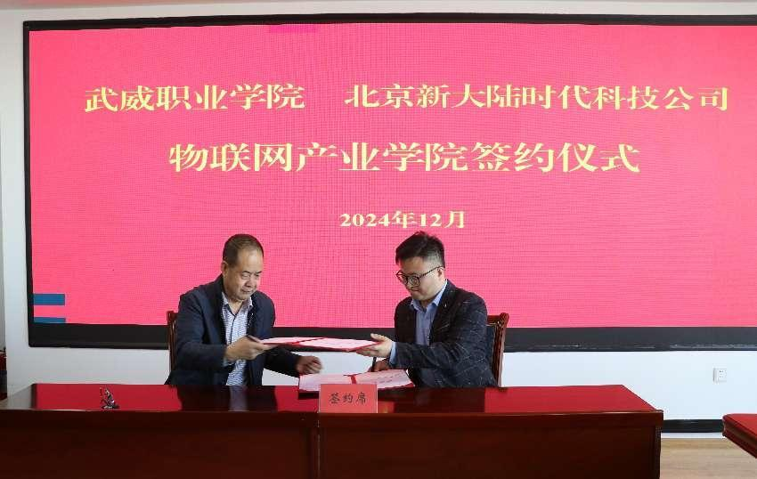 為全面深化產(chǎn)教融合,加強校企合作,進一步提高我校人才培養(yǎng)質(zhì)量。12月3日,學校在能源科技樓811會議室舉行武威職業(yè)學院和北京新大陸時代科技公司物聯(lián)網(wǎng)產(chǎn)業(yè)學院簽約暨揭牌儀式。北京新大陸時代科技公司西北區(qū)總監(jiān)劉寧、技術(shù)總監(jiān)樊斌,相關(guān)業(yè)務部門負責人,學校校長、黨委副書記張開禮、黨委副書記翟存祥、相關(guān)部門負責人及教師代表參加活動。黨委委員、副校長王永緒主持儀式。