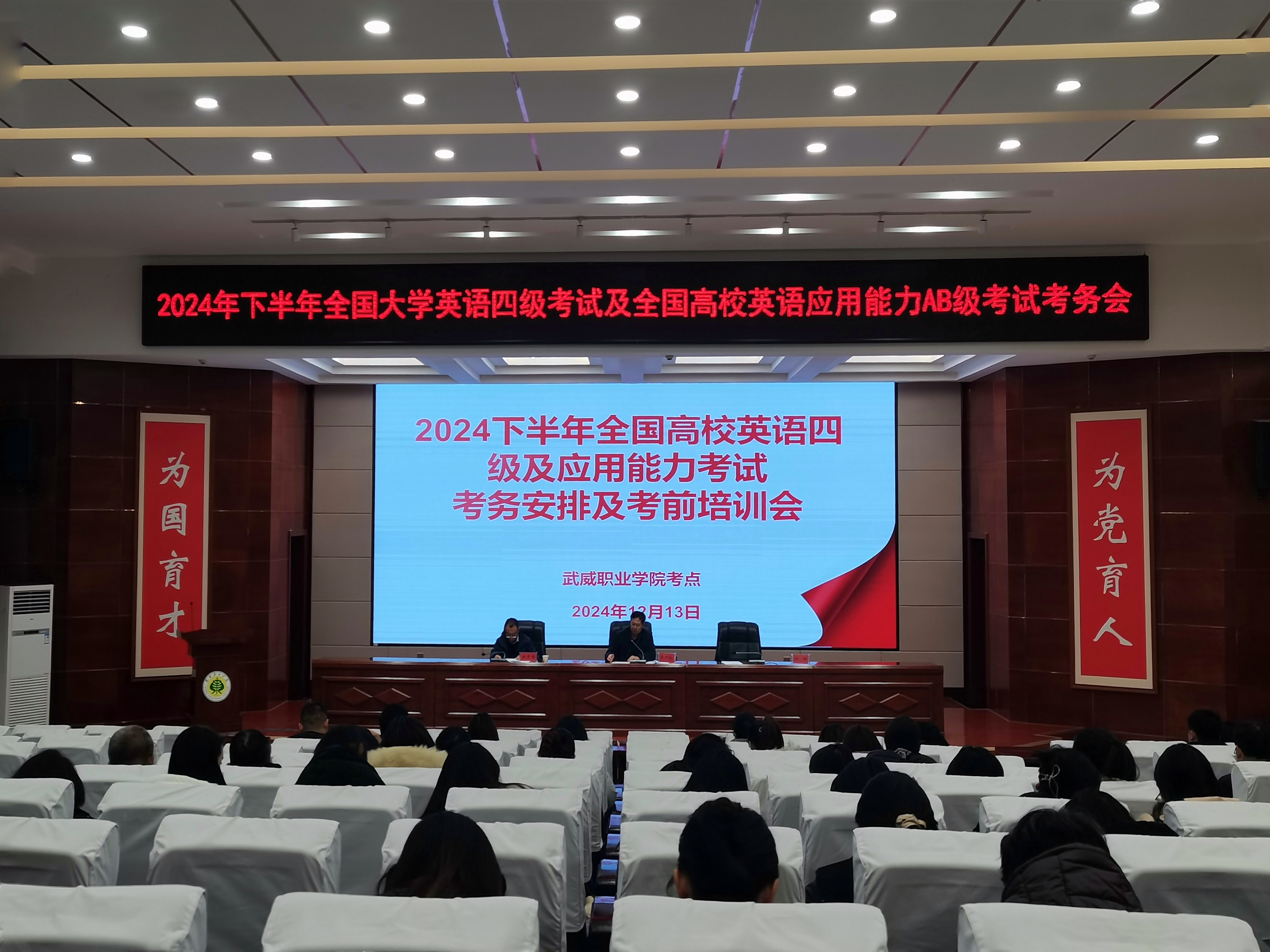 12月13日下午,在菁英廳召開了全國大學生英語四級暨全國高校英語應用能力AB級考試的考務安排及考前培訓會議。會上,黨委副書記、副校長張開禮強調(diào)了考試紀律的重要性,要求所有監(jiān)考人員和考生嚴格遵守考試規(guī)定,確??荚嚨墓?、公正和順利進行。培訓考試中心主任顏魯薪就考試的各項具體事宜進行了詳細安排,包括考試流程、考場布置、試卷分發(fā)與回收等環(huán)節(jié),確??荚嚬ぷ鞯挠行蜻M行。