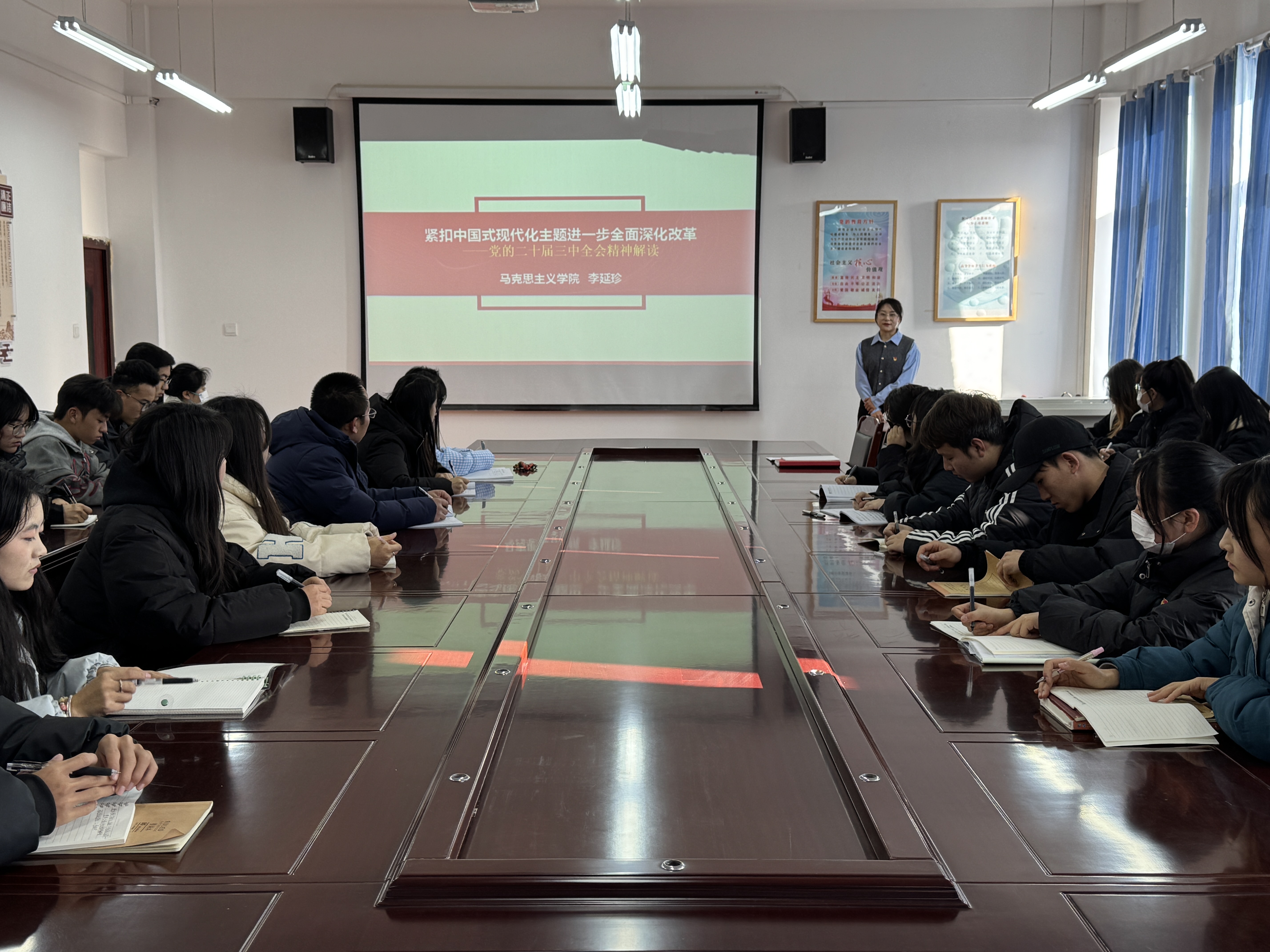 宣講人對(duì)黨的二十屆三中全會(huì)精神進(jìn)行了深入解讀,闡述了進(jìn)一步全面深化改革的總目標(biāo),強(qiáng)調(diào)了推進(jìn)中國(guó)式現(xiàn)代化進(jìn)程中教育、醫(yī)療等領(lǐng)域改革的重要意義,讓師生們深刻認(rèn)識(shí)到全會(huì)為新時(shí)代新征程黨和國(guó)家事業(yè)發(fā)展指明的前進(jìn)方向、確立的行動(dòng)指南。