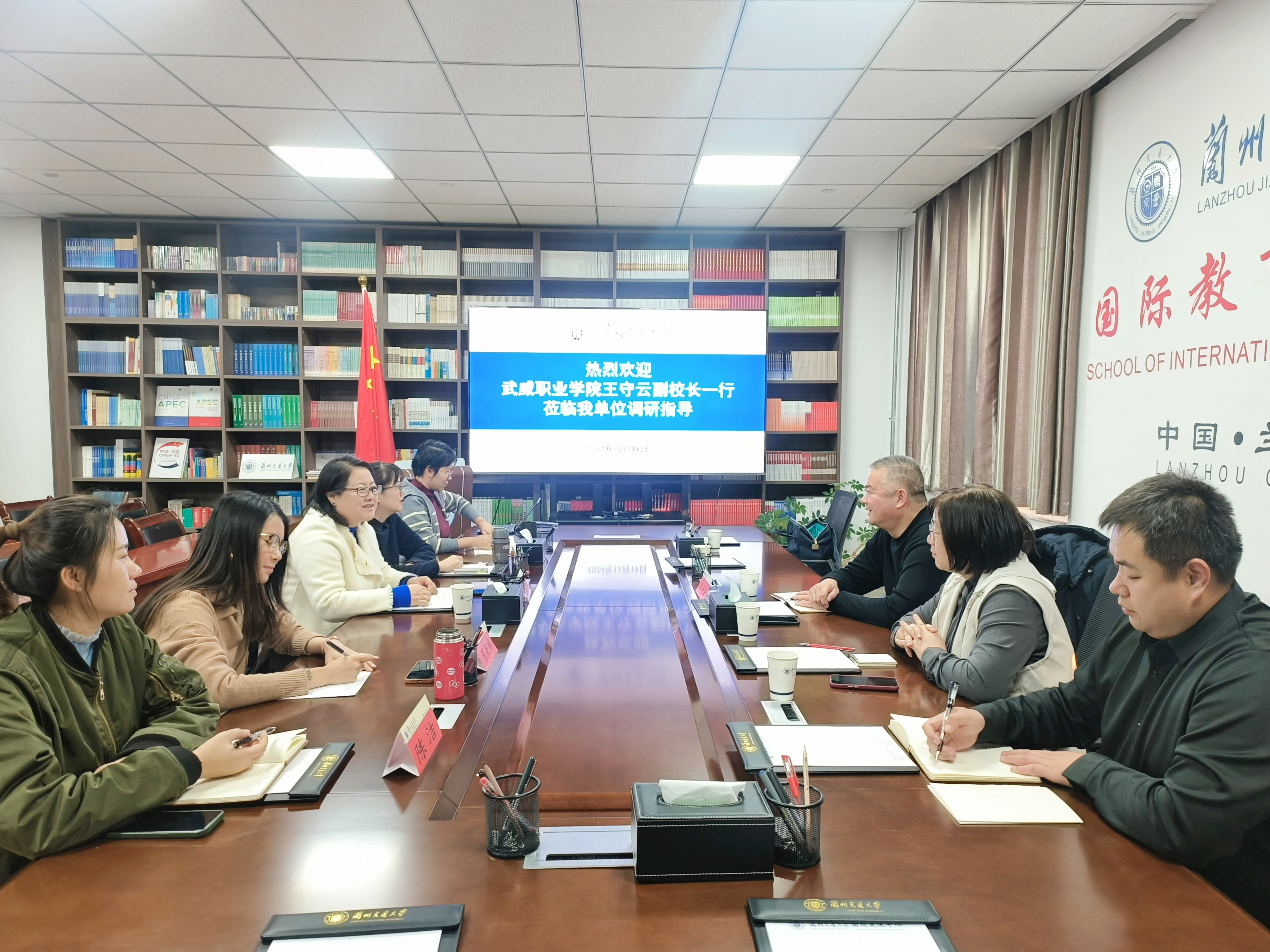 蘭州交通大學(xué)國(guó)際交流中心張國(guó)錦主任重點(diǎn)介紹了學(xué)校國(guó)際教育項(xiàng)目和國(guó)際交流合作基本情況。雙方就國(guó)際教育項(xiàng)目中的辦學(xué)經(jīng)驗(yàn)、國(guó)際化人才培養(yǎng)方式、國(guó)際學(xué)生管理、外籍教師招聘等方面進(jìn)行深入討論交流。王守云表示,希望雙方在過(guò)去良好合作的基礎(chǔ)上,以此次交流為契機(jī),兩校能有很多交流合作機(jī)會(huì),為我校師生提供更廣闊的國(guó)際化教育平臺(tái)。