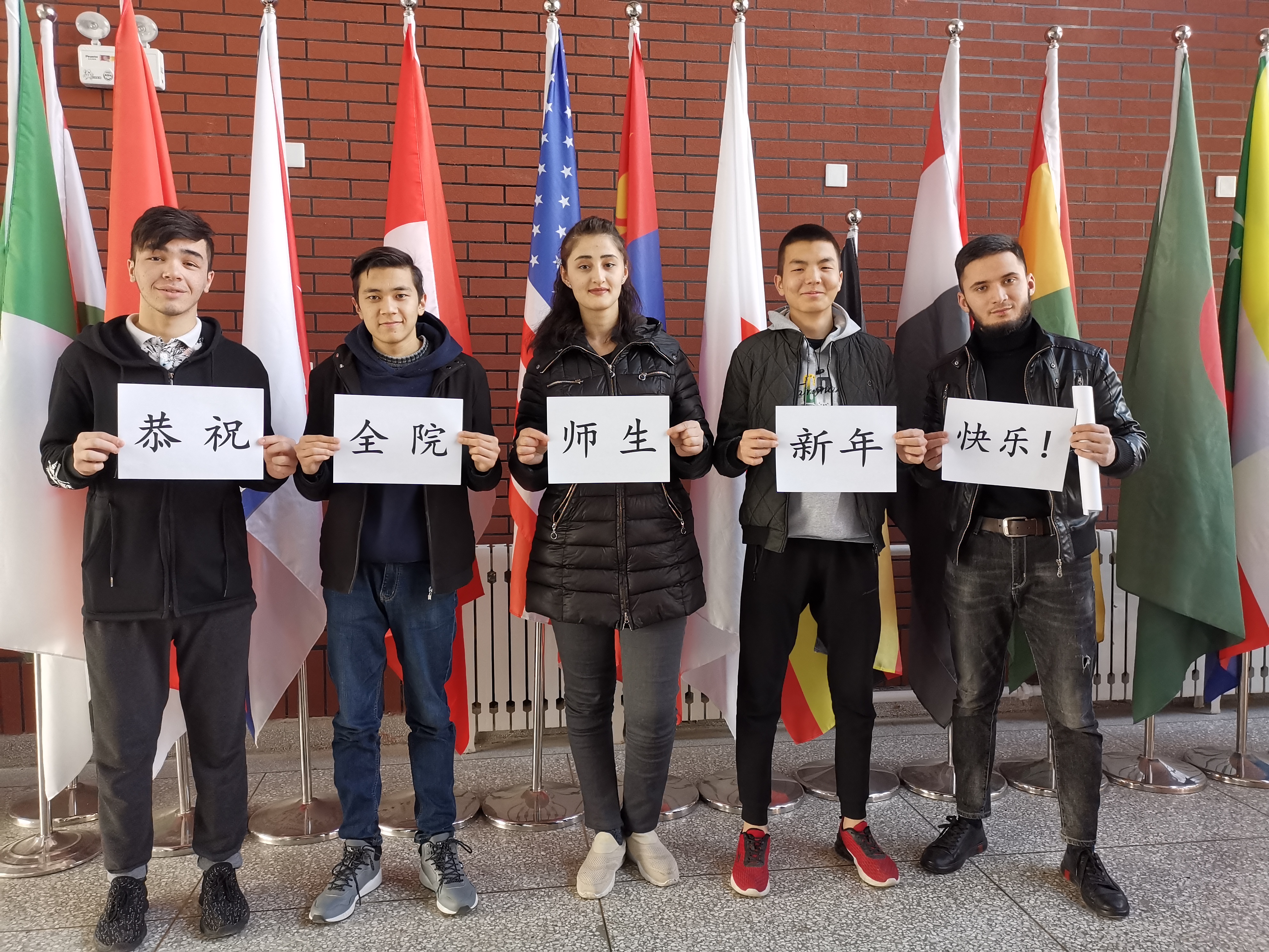 留學(xué)生恭祝全校師生新年快樂(lè)