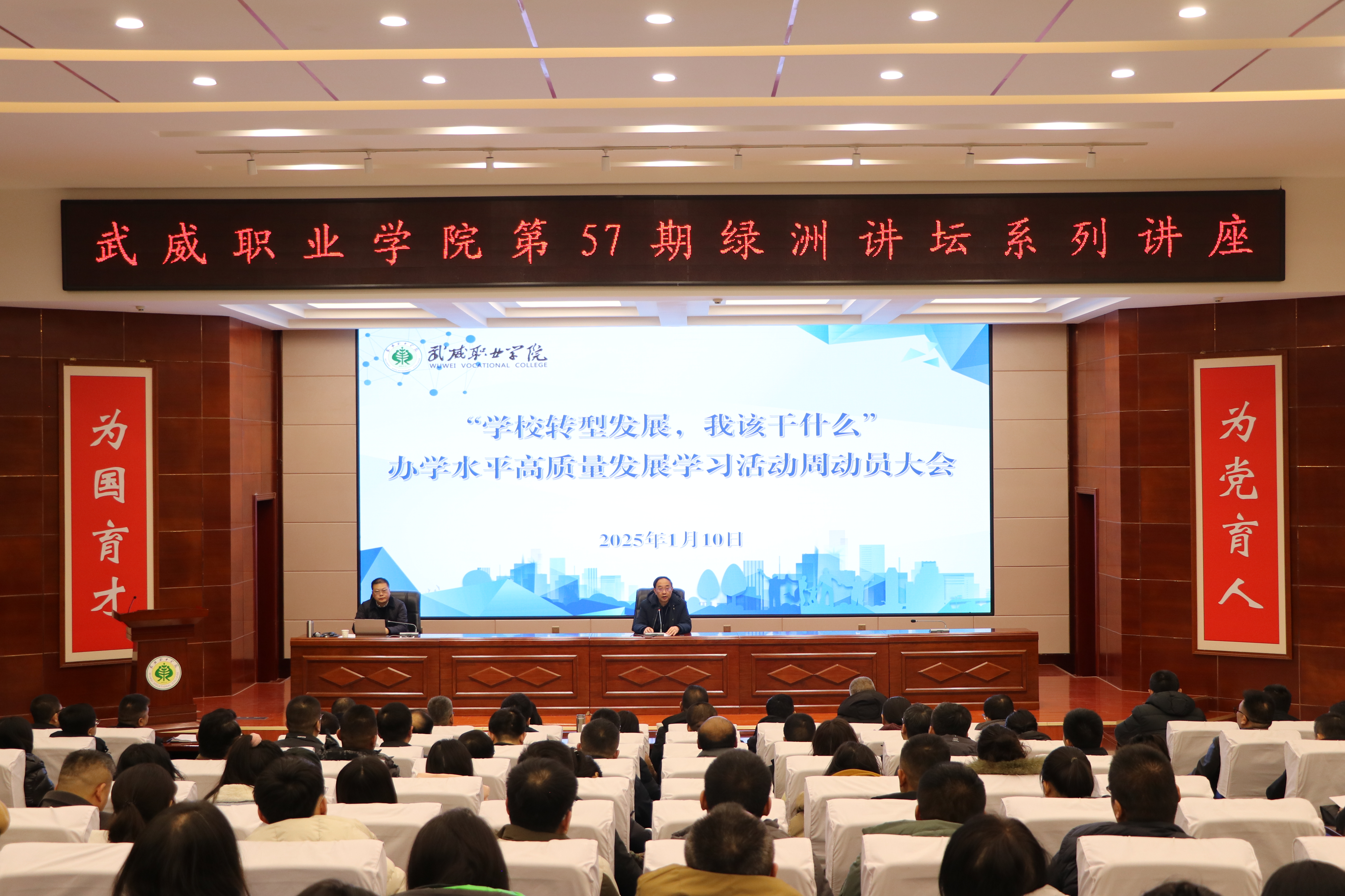 1月10日下午,學校第五十七期綠洲講壇暨辦學水平高質(zhì)量發(fā)展學習活動周動員大會在菁英廳順利啟動,學校領(lǐng)導、中層管理干部、教研室主任及教師代表共210余人參加了活動。黨委副書記翟存祥主持活動。