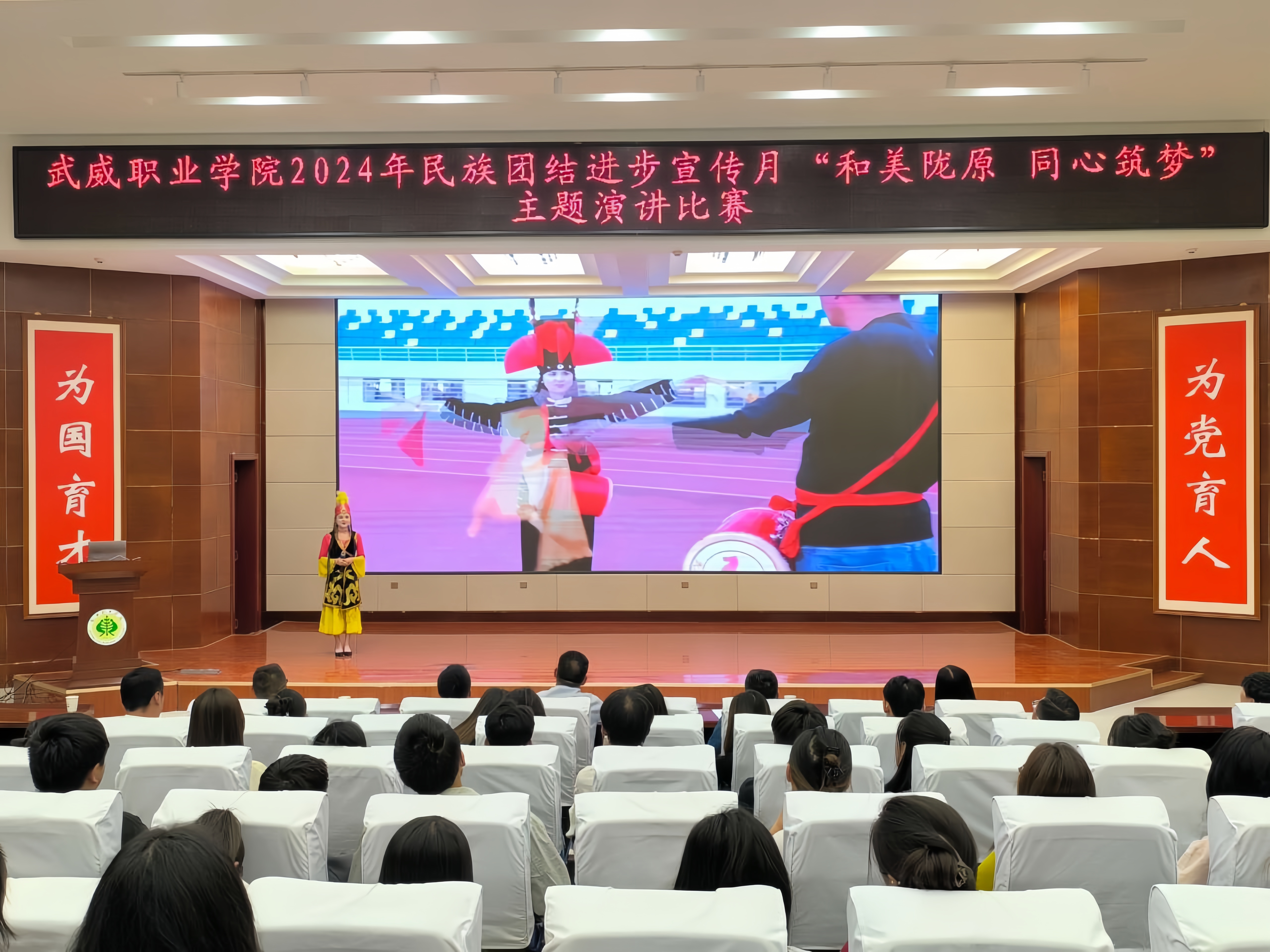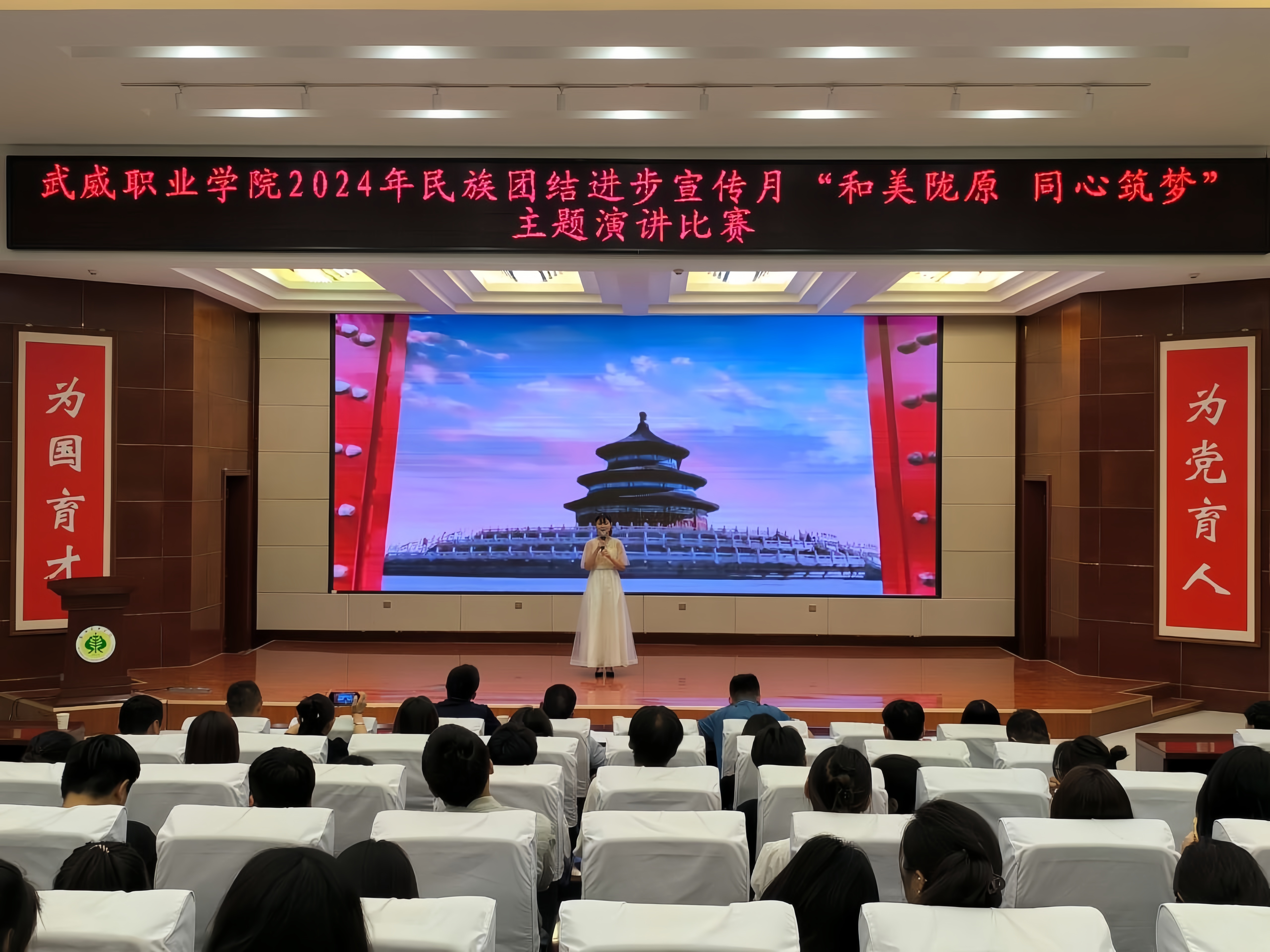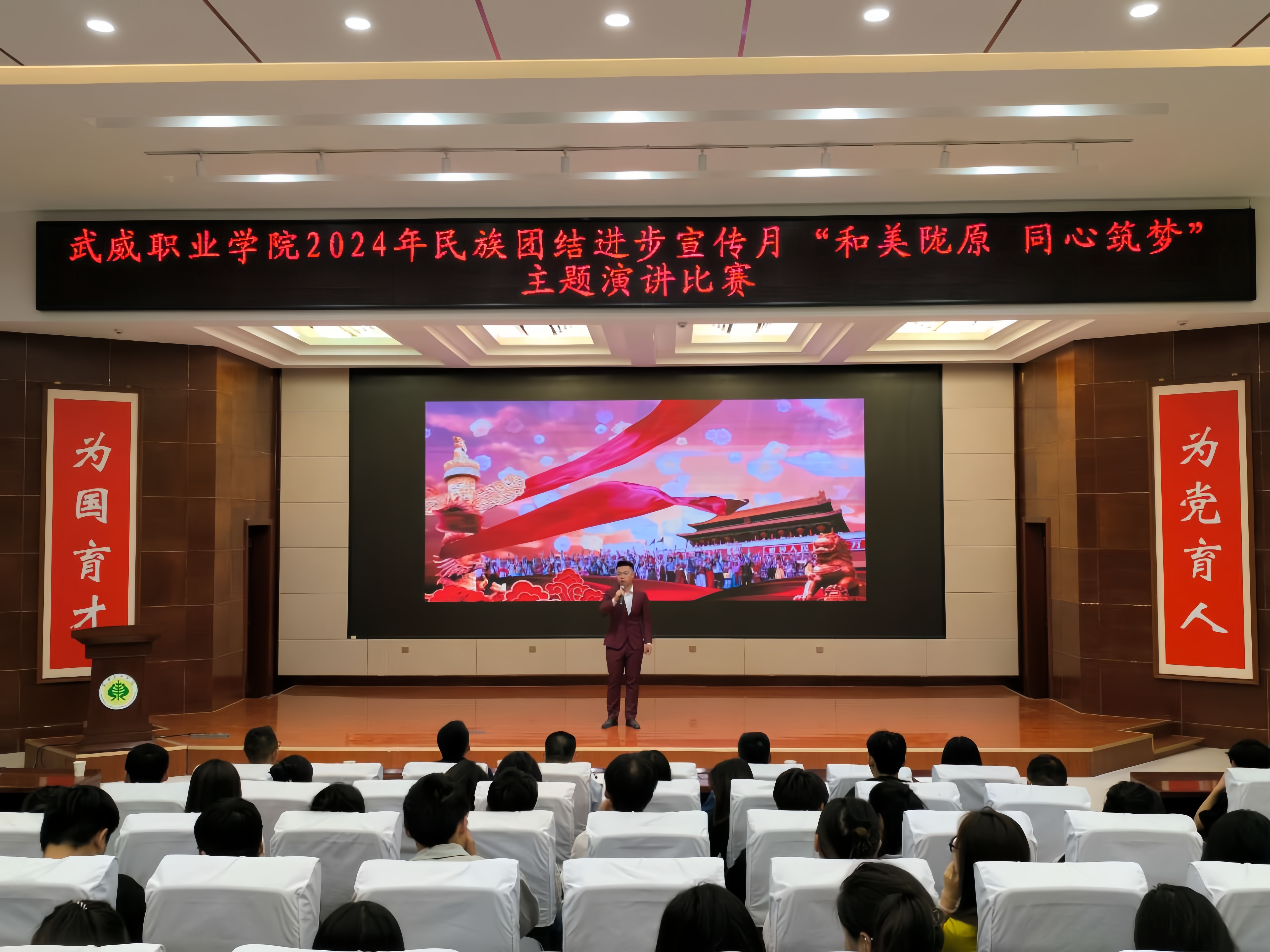 為持續(xù)深化民族團(tuán)結(jié)進(jìn)步教育,進(jìn)一步引導(dǎo)各族師生牢固樹立“四個(gè)與共”的共同體理念。學(xué)校于5月30日晚在學(xué)生發(fā)展中心菁英廳舉辦了“和美隴原 同心筑夢(mèng)”主題演講比賽。200余名師生參加活動(dòng)。