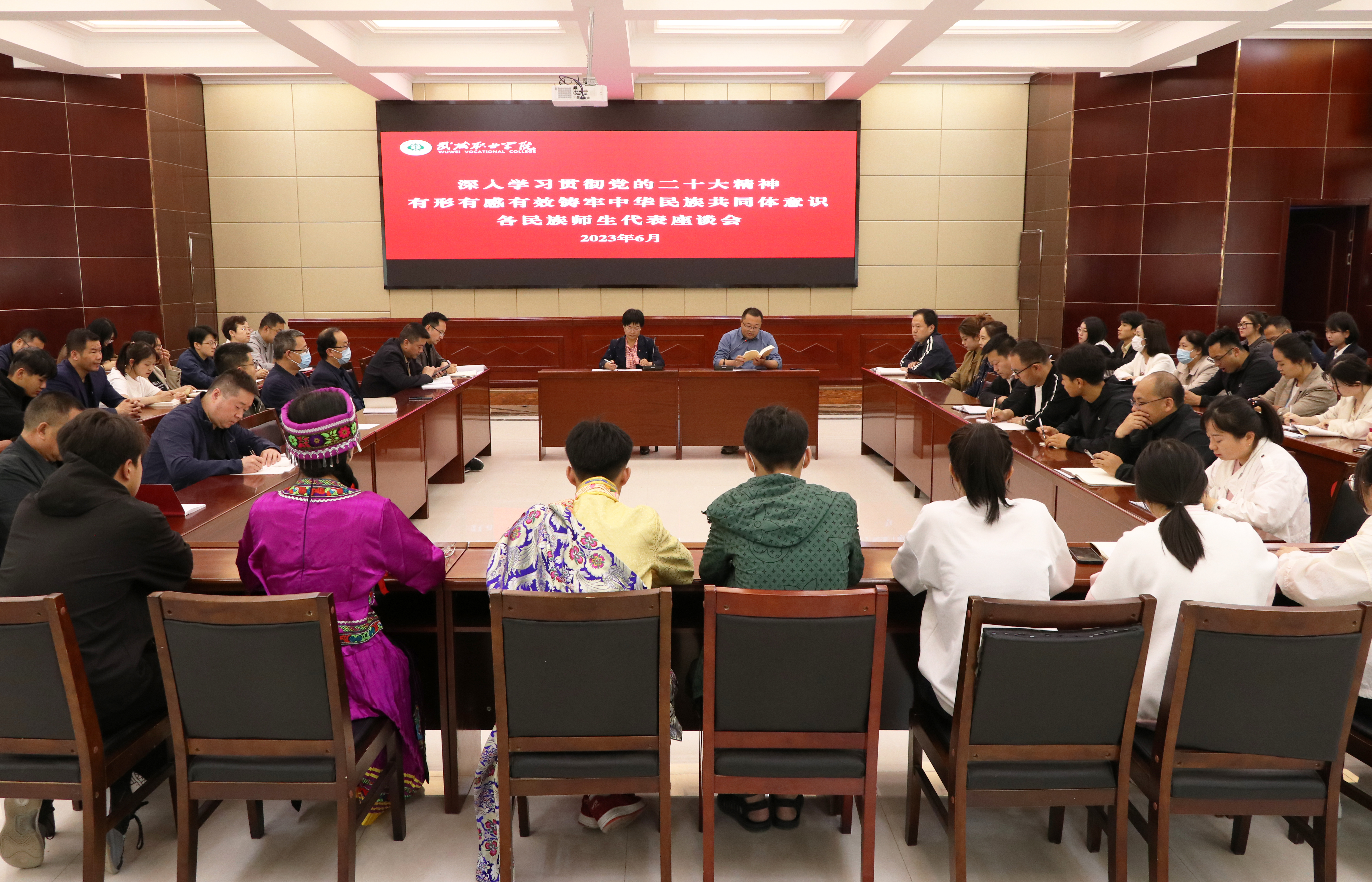 6月2日,學(xué)校召開(kāi)以“學(xué)習(xí)貫徹黨的二十大精神? 有形有感有效鑄牢中華民族共同體意識(shí)”為主題的各民族師生代表座談會(huì),學(xué)校漢族、藏族、回族、土族、滿(mǎn)族、苗族等13個(gè)民族師生代表60多人參加了座談會(huì)。學(xué)校黨委委員、副校長(zhǎng)何毅出席會(huì)議并講話,座談會(huì)由宣傳統(tǒng)戰(zhàn)部負(fù)責(zé)人魏全民主持。