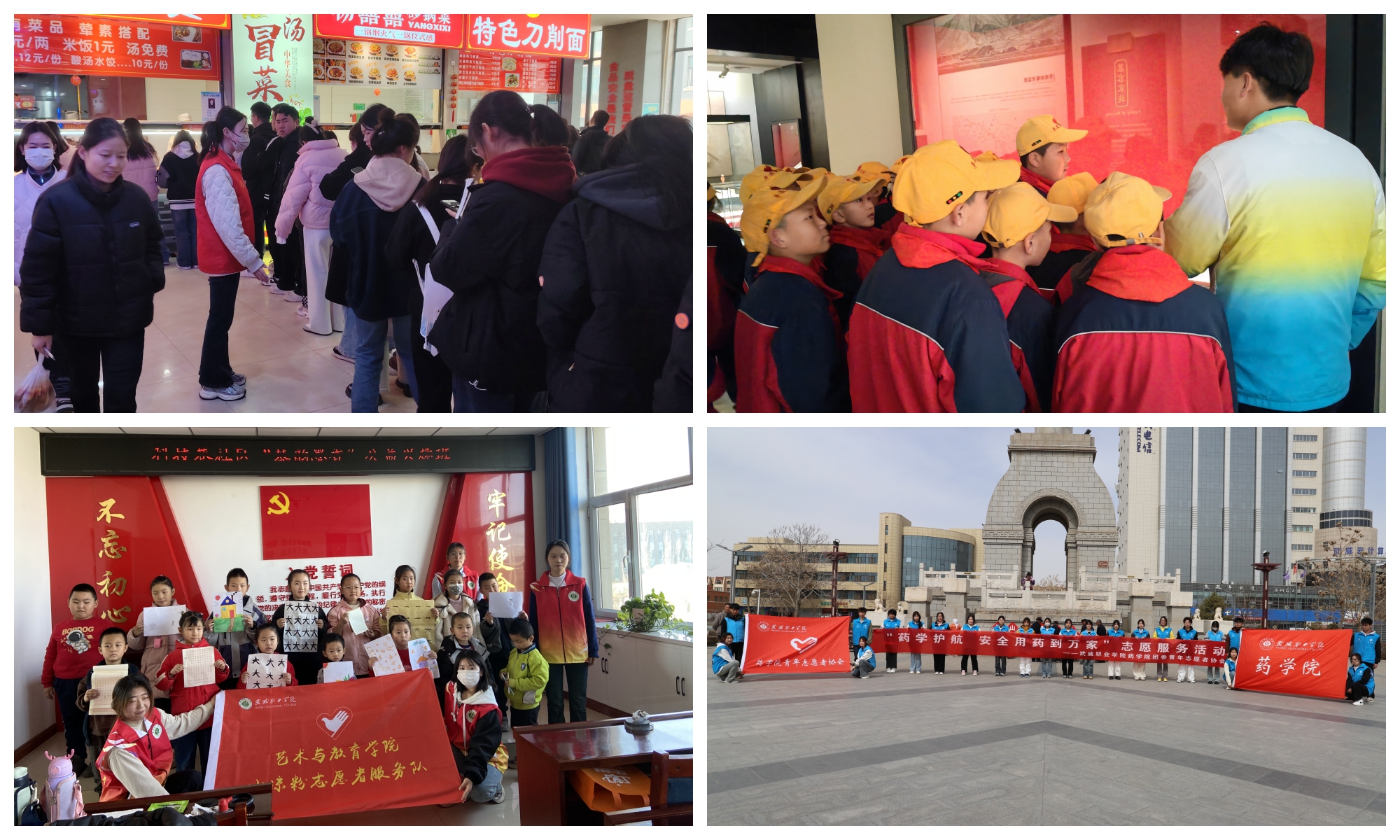 結(jié)合專業(yè)特色,開(kāi)展志愿服務(wù)活動(dòng)。3月5日,現(xiàn)代農(nóng)業(yè)學(xué)院20余名志愿者在學(xué)校餐廳開(kāi)展“食安校園 你我同行”志愿服務(wù)活動(dòng),普及食品安全科學(xué)知識(shí)。3月5日,經(jīng)濟(jì)管理學(xué)院組織旅游管理專業(yè)志愿者走進(jìn)博物館,向前來(lái)參觀的游客義務(wù)講解。3月15日,藝術(shù)與教育學(xué)院學(xué)前教育專業(yè)志愿者走進(jìn)科技巷社區(qū),為留守兒童帶去豐富的興趣活動(dòng),激發(fā)小朋友們對(duì)唱歌、舞蹈、書(shū)法、樂(lè)器演奏等特長(zhǎng)的學(xué)習(xí)熱情。3月20日,醫(yī)學(xué)技術(shù)學(xué)院開(kāi)展口腔衛(wèi)生健康宣傳志愿服務(wù)活動(dòng),倡議改善刷牙習(xí)慣,注重口腔健康。3月22日,藥學(xué)院志愿者在文化廣場(chǎng)開(kāi)展“藥學(xué)護(hù)航,安全用藥到萬(wàn)家”志愿服務(wù)活動(dòng),為市民們科普正確用藥知識(shí),講解安全用藥和藥品保存常識(shí),通過(guò)發(fā)放宣傳資料、現(xiàn)場(chǎng)講解等方式,詳細(xì)介紹藥品回收的重要意義。