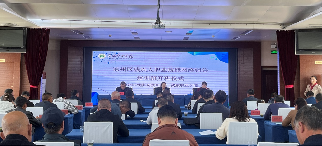 ?????? 4月22日下午,由涼州區(qū)殘疾人聯(lián)合會主辦,學(xué)校承辦的涼州區(qū)殘疾人職業(yè)技能網(wǎng)絡(luò)銷售培訓(xùn)班順利開班,來自涼州區(qū)的90名殘疾人學(xué)員參加了本次培訓(xùn)學(xué)習(xí)。涼州區(qū)殘聯(lián)副理事長張家燕,學(xué)校黨委委員、副校長田迎春,藥學(xué)院黨總支書記蔡柱山出席開班儀式。