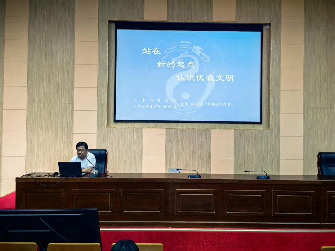 講座中,劉玉璞以習近平總書記考察天水伏羲廟的重要講話為切入點,圍繞“中華文明起源”“鑄牢中華民族共同體意識”“實現(xiàn)中華民族偉大復興”三大維度展開,系統(tǒng)梳理了伏羲文化研究的最新成果,指出伏羲文明是中華文明的重要源頭,其文化符號深刻體現(xiàn)了中華民族早期先民的宇宙觀與價值觀。通過考古發(fā)現(xiàn)與文獻互證,他闡釋了伏羲文化在推動多民族融合、促進文化認同中的歷史作用,并強調(diào)伏羲文化在當代的價值不僅在于學術研究,更需轉(zhuǎn)化為增強民族文化自信、服務社會發(fā)展的精神動力。這場講座以生動的語言和詳實的例證,為聽眾勾勒出一部從史前文明到當代傳承的伏羲文化發(fā)展史,現(xiàn)場反響熱烈。