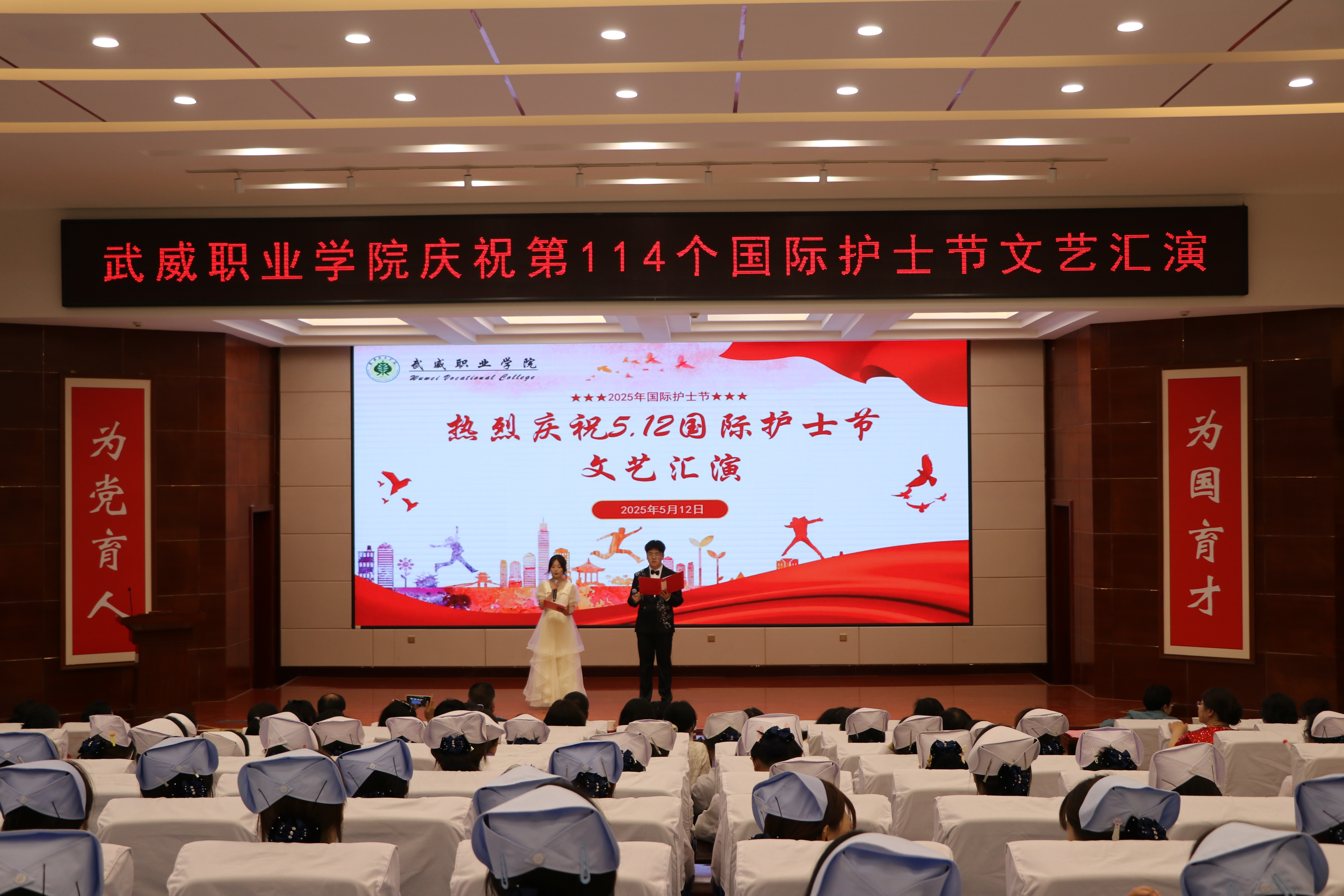 為慶祝第114個(gè)國際護(hù)士節(jié),弘揚(yáng)“敬佑生命、救死扶傷”的職業(yè)精神,護(hù)理學(xué)院于5月12日在學(xué)校菁英廳舉行5.12國際護(hù)士節(jié)文藝匯演。校長李海軍,黨委委員、副校長何毅、王守云出席活動(dòng)。護(hù)理學(xué)院師生代表共200余人參加了文藝匯演活動(dòng)。