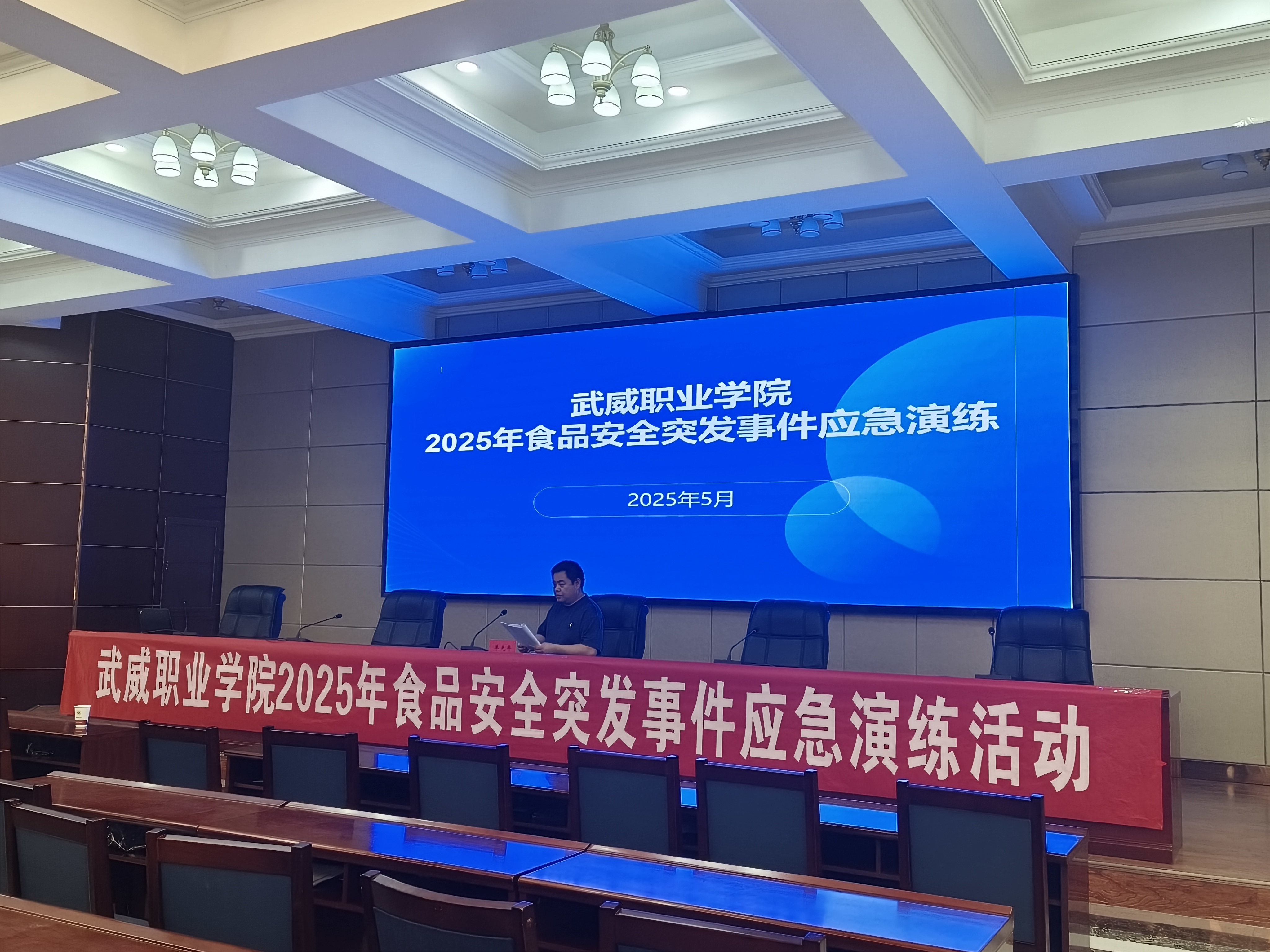 為全面貫徹落實習(xí)近平總書記關(guān)于食品安全重要指示批示精神和對食品安全提出的“四個最嚴”要求,不斷加強我校食品安全應(yīng)急管理體系建設(shè),著力提高學(xué)校食品安全突發(fā)事件的快速響應(yīng)、高效處置能力,牢固樹立“全程防范、全員應(yīng)急”的理念,學(xué)校于5月21日下午在行樹樓北側(cè)報告廳舉辦2025年食品安全突發(fā)事件應(yīng)急演練。學(xué)校食品安全總監(jiān)、辦公室、宣傳統(tǒng)戰(zhàn)部、學(xué)生工作部、后勤管理處、校醫(yī)室、各二級學(xué)院輔導(dǎo)員代表和學(xué)生食堂、超市、后勤服務(wù)樓全體從業(yè)人員200余人參加演練。