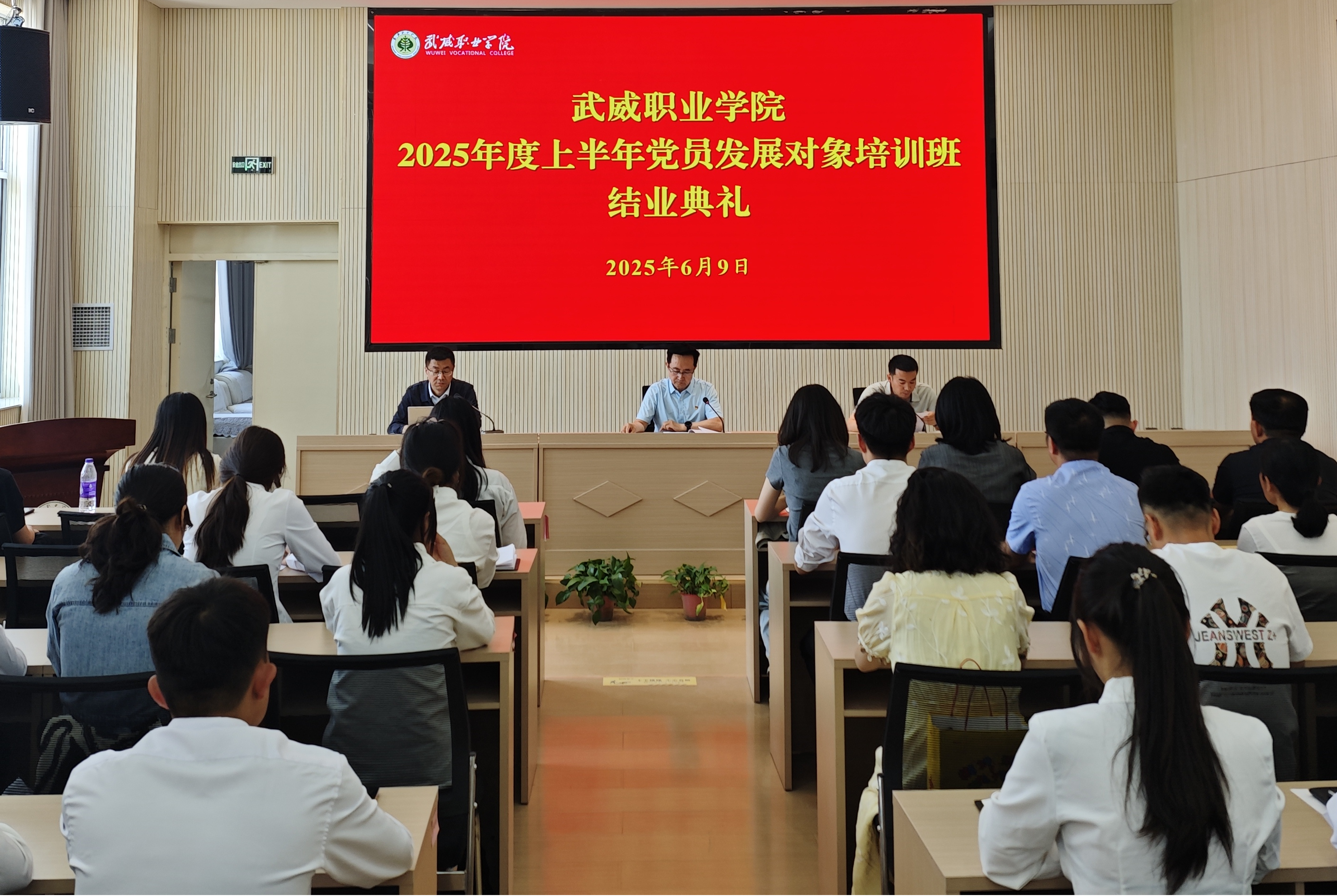6月9日,學(xué)校在圖書館二樓報(bào)告廳舉行了2025年度上半年黨員發(fā)展對象培訓(xùn)班結(jié)業(yè)典禮,學(xué)校黨委委員、黨委組織部(人事處)部長任陶出席典禮并講話,信息技術(shù)學(xué)院黨總支書記史子新,各基層黨組織組織員,學(xué)校全體黨員發(fā)展對象參加會(huì)議。會(huì)議由黨委組織部(人事處)副部長許中璞主持。