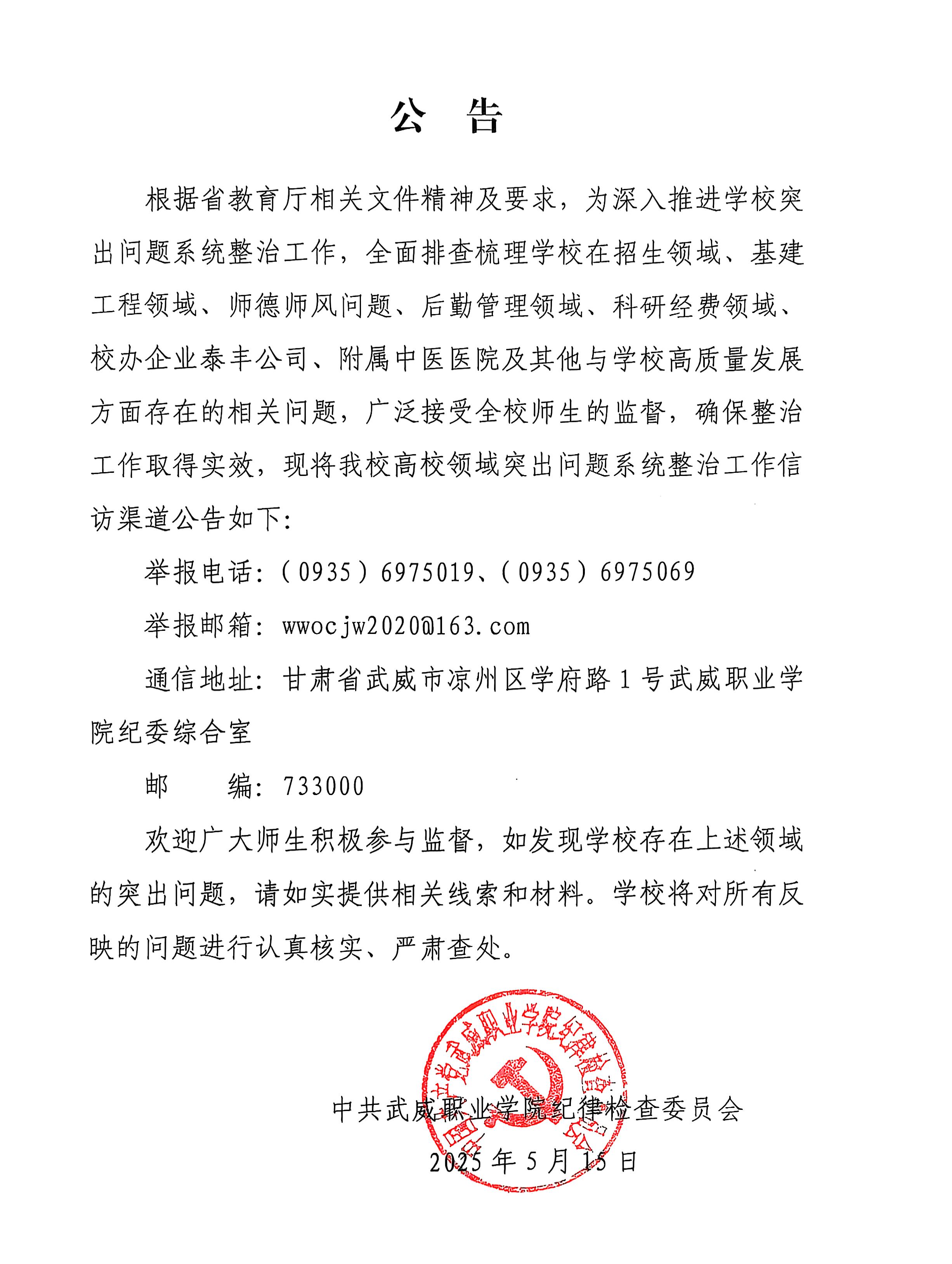 中共武威職業(yè)學(xué)院紀(jì)律檢查委員會、監(jiān)察專員辦公…