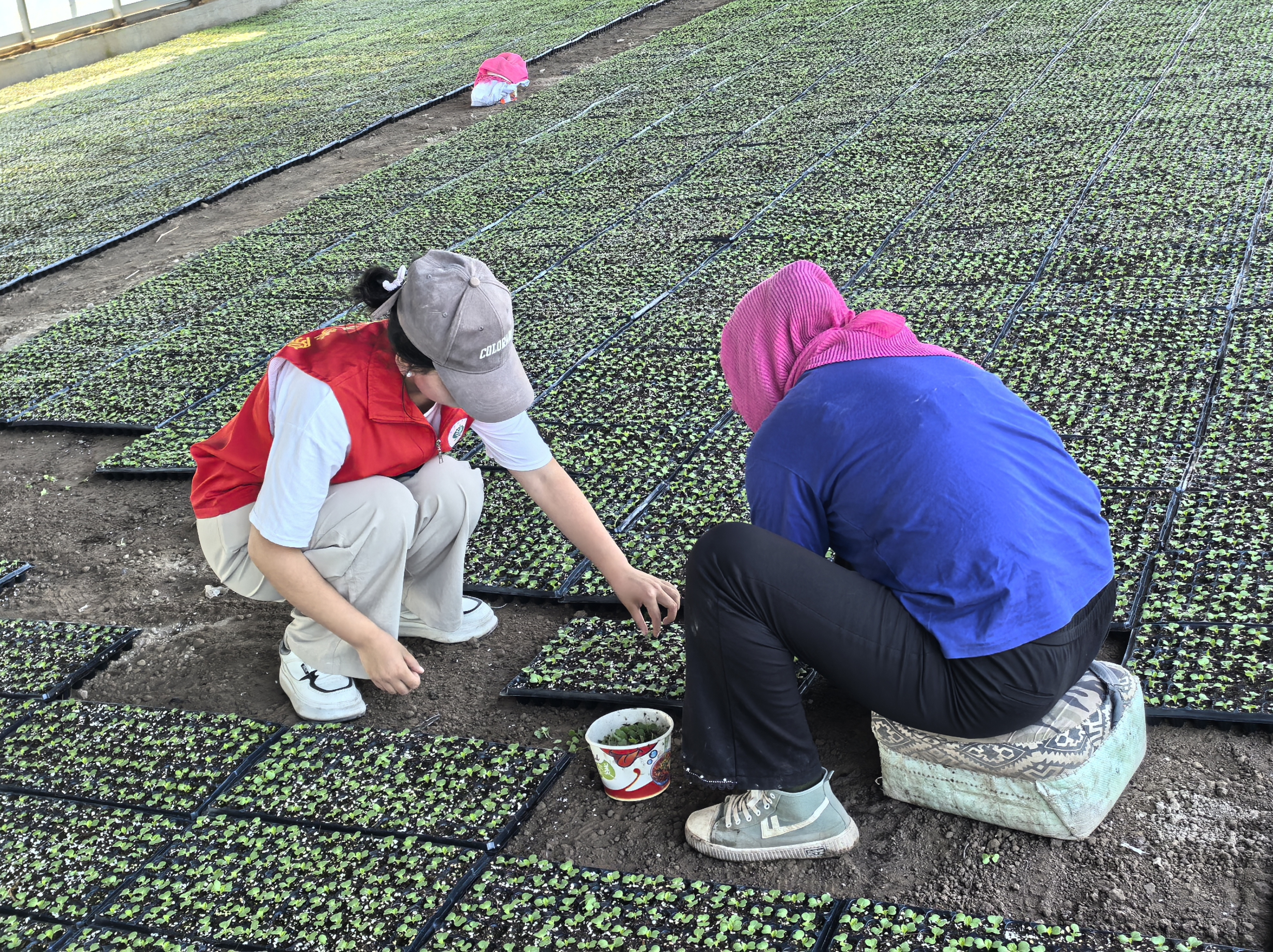 在涼州區(qū)雙城鎮(zhèn)徐信村,服務(wù)隊(duì)同步開展農(nóng)業(yè)技術(shù)指導(dǎo)與健康環(huán)境調(diào)研。志愿者們深入田間地頭,實(shí)地操練娃娃菜集約化育苗、間苗及生物防治技術(shù),深度剖析農(nóng)藥使用痛點(diǎn)。同時(shí),走訪農(nóng)戶調(diào)研居住環(huán)境,分析露天垃圾與腸道傳染病的關(guān)聯(lián),提出環(huán)境健康綜合治理意見。“農(nóng)田+健康”雙線實(shí)踐模式,既提升了農(nóng)業(yè)生產(chǎn)安全性,又強(qiáng)化了健康環(huán)境干預(yù),生動(dòng)詮釋了“以農(nóng)促健、以健護(hù)農(nóng)”的深層聯(lián)動(dòng)機(jī)制。
