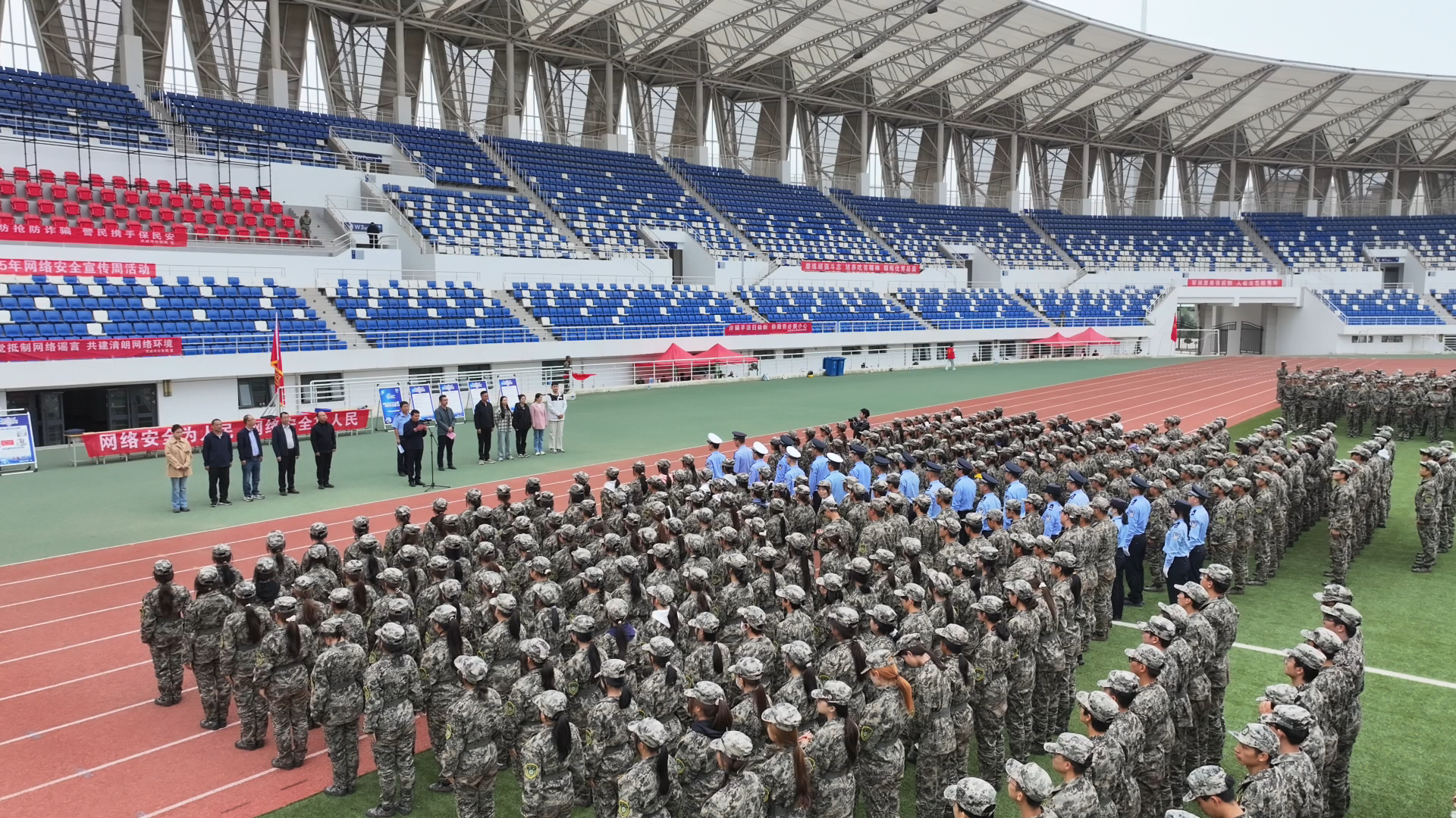 9月18日,武威市公安局網(wǎng)安支隊(duì)聯(lián)合武威職業(yè)技術(shù)大學(xué)在學(xué)校體育場舉辦2025年網(wǎng)絡(luò)安全宣傳周集中宣傳活動(dòng)。信息技術(shù)學(xué)院組織全體師生參加了此次活動(dòng),活動(dòng)以“網(wǎng)絡(luò)安全為人民,網(wǎng)絡(luò)安全靠人民——以高水平安全守護(hù)高質(zhì)量發(fā)展”為主題,旨在進(jìn)一步提升廣大師生的網(wǎng)絡(luò)安全意識(shí)和防護(hù)技能,營造清朗有序的校園網(wǎng)絡(luò)環(huán)境。武威市公安局網(wǎng)安支隊(duì)支隊(duì)長張建軍,學(xué)校網(wǎng)絡(luò)安全與信息技術(shù)中心工作人員,各學(xué)院輔導(dǎo)員現(xiàn)場參加活動(dòng)。
