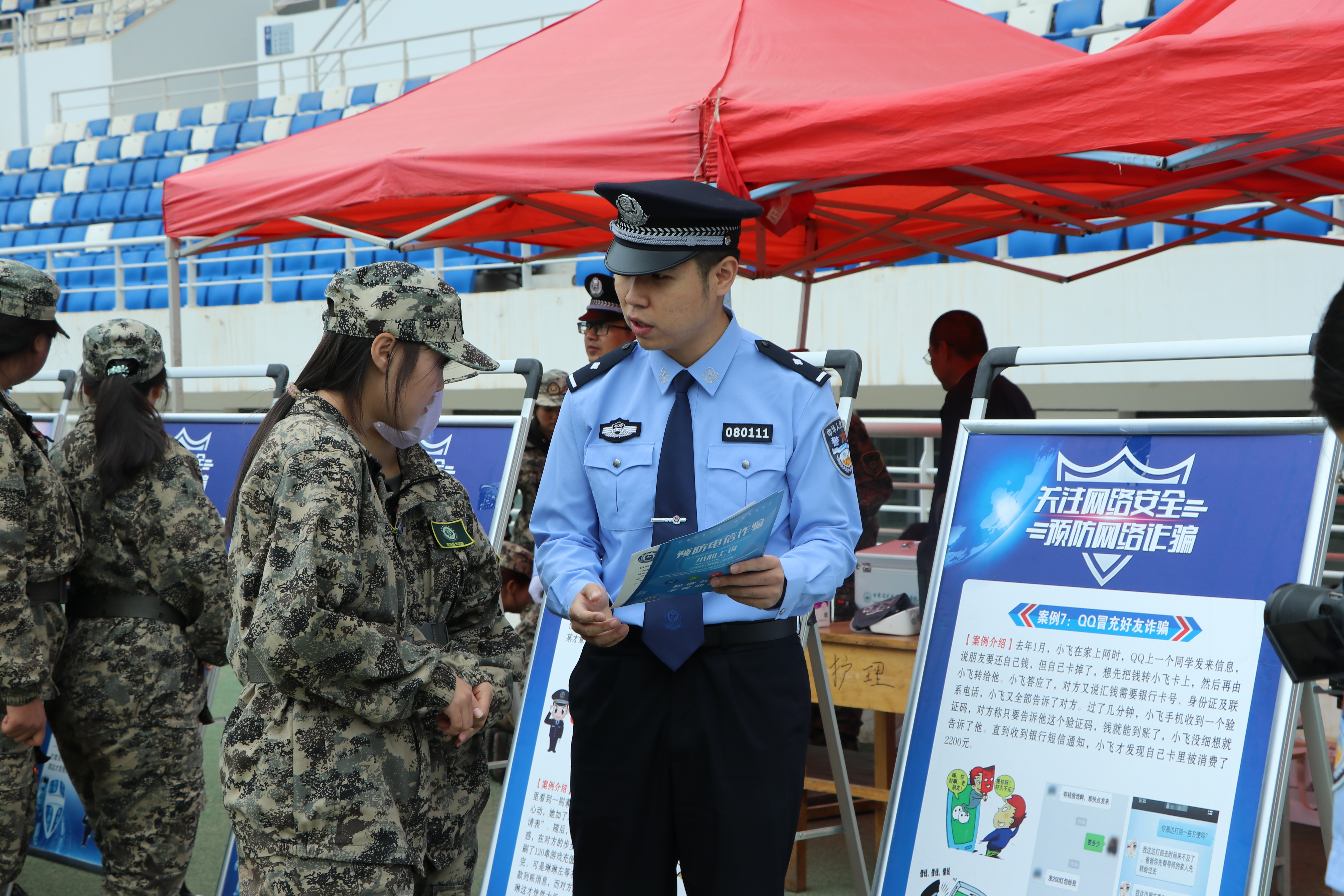 活動(dòng)現(xiàn)場設(shè)置了“網(wǎng)絡(luò)安全主題展”,通過圖文展板、宣傳彩頁等形式,集中展示《網(wǎng)絡(luò)安全法》《數(shù)據(jù)安全法》《個(gè)人信息保護(hù)法》等法律法規(guī),以及AI換臉詐騙、網(wǎng)絡(luò)謠言治理、校園貸陷阱等熱點(diǎn)內(nèi)容。市公安局民警與學(xué)校網(wǎng)絡(luò)安全與信息技術(shù)中心工作人員現(xiàn)場發(fā)放《大學(xué)生防騙手冊》《個(gè)人信息保護(hù)小貼士》等宣傳資料,并耐心講解宣傳資料中的重點(diǎn)內(nèi)容。