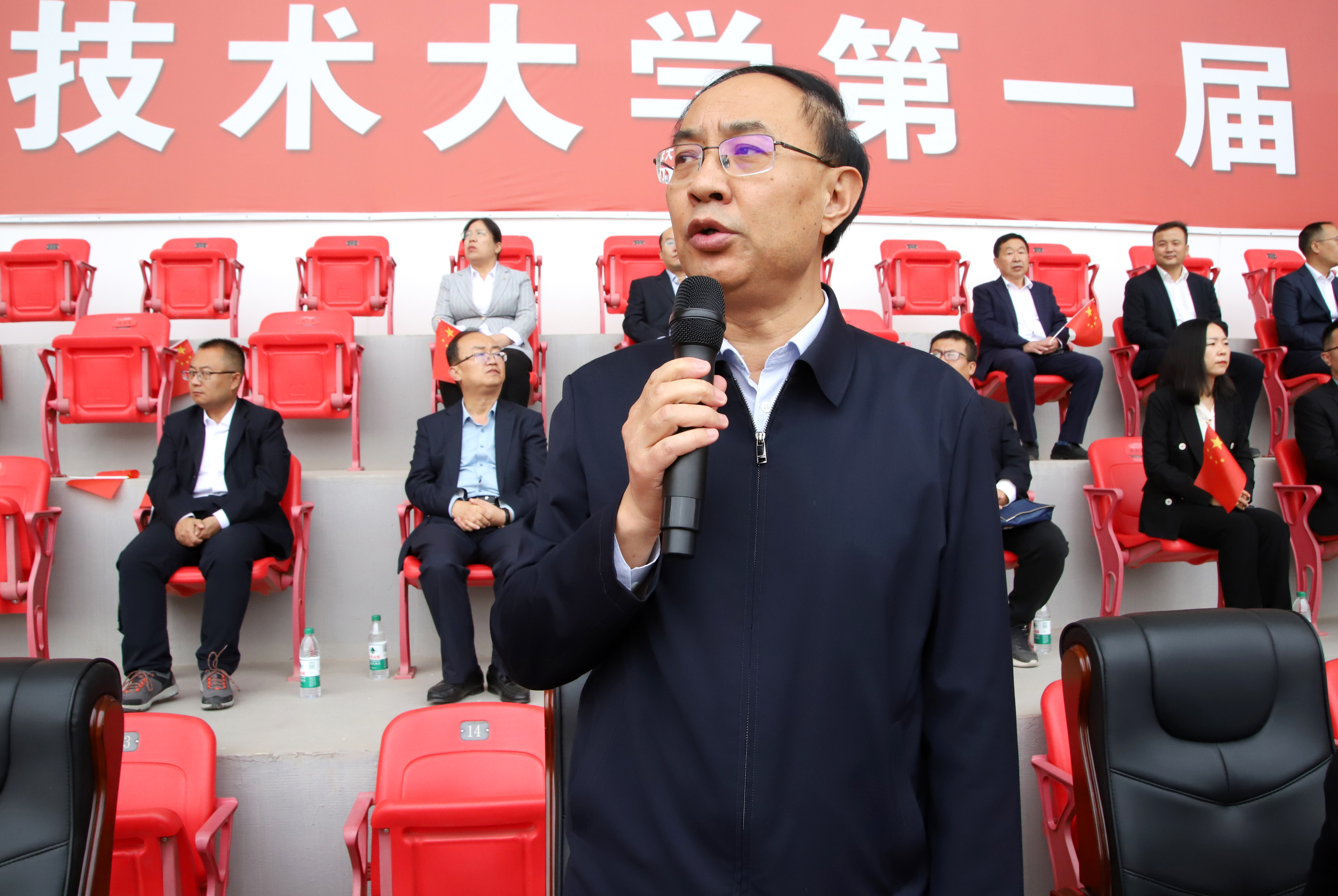 王宏宣布武威職業(yè)技術(shù)大學(xué)第一屆田徑運(yùn)動會開幕。