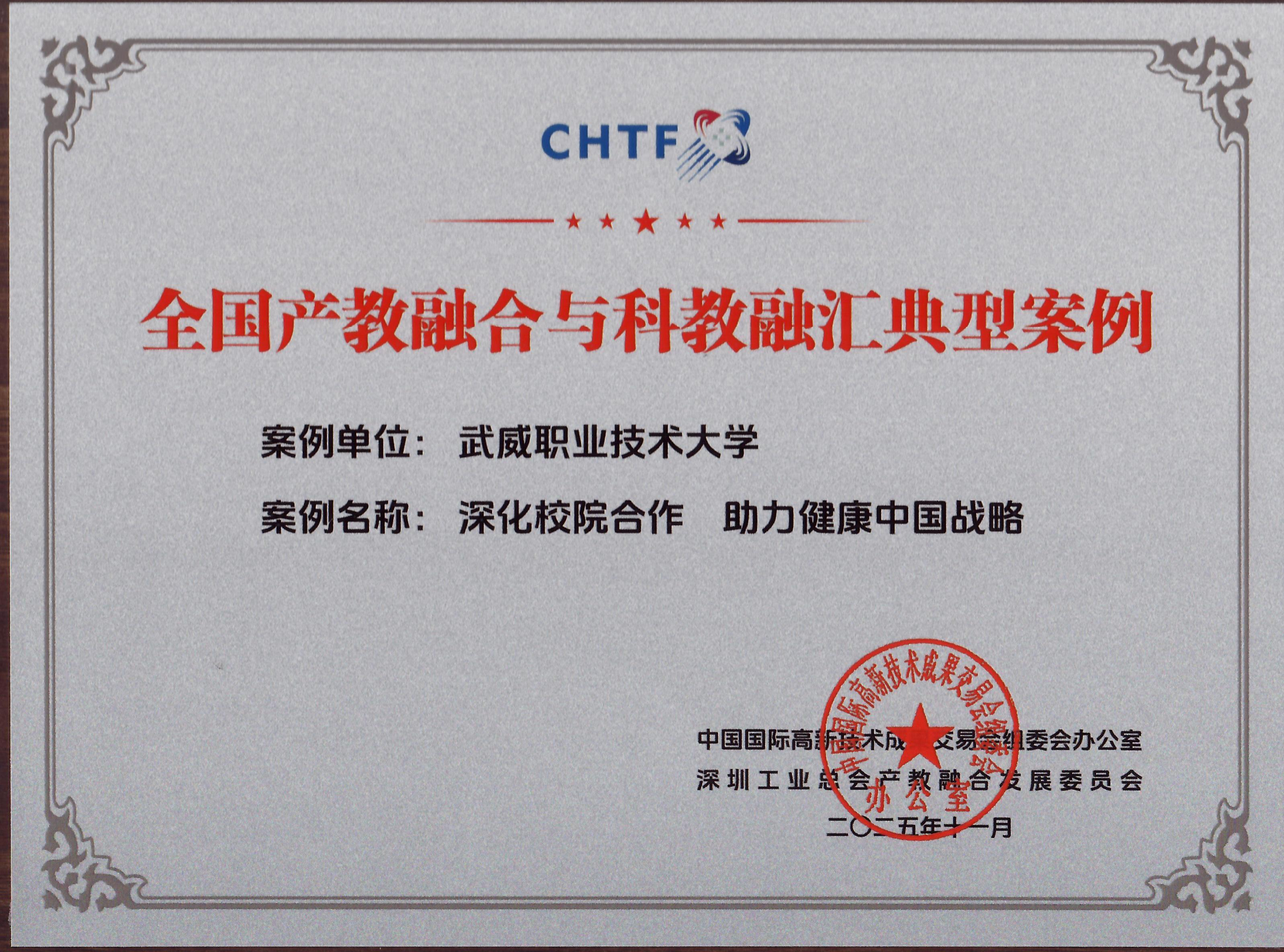近日,第二十七屆中國(guó)國(guó)際高新技術(shù)成果交易會(huì)組委會(huì)公布產(chǎn)教融合與科教融匯典型案例評(píng)選結(jié)果,我校報(bào)送的《深化校院合作 助力健康中國(guó)戰(zhàn)略——武威職業(yè)技術(shù)大學(xué)與甘肅省武威腫瘤醫(yī)院開展校院合作新實(shí)踐》成功入選《全國(guó)產(chǎn)教融合與科教融匯典型案例匯編》,標(biāo)志著我校在實(shí)施科教融匯行動(dòng),推動(dòng)健康人才培養(yǎng)實(shí)踐獲得國(guó)家級(jí)平臺(tái)認(rèn)可。