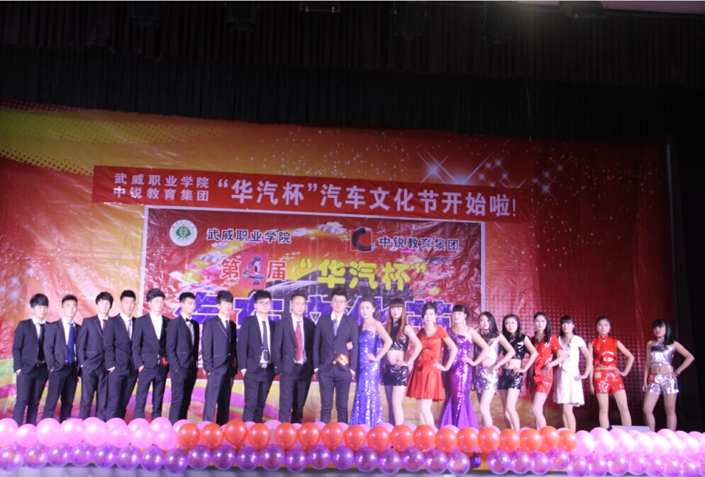 2015年11月24日,以“舞動汽車夢想,拼搏華汽人生”為主題的第四屆“ 華汽杯”汽車文化節(jié)在武威職業(yè)學(xué)院中銳汽車實訓(xùn)中心及學(xué)院大禮堂隆重開幕。本次汽車文化節(jié)由汽車工程系與中銳教育集團(tuán)武威項目部共同主辦,由華汽之星協(xié)會及系部團(tuán)學(xué)會承辦,大賽得到了武威職業(yè)學(xué)院駕駛員培訓(xùn)中心的大力支持與贊助,同時,學(xué)院星空影視協(xié)會、弦舞琴音協(xié)會、精舞空間舞團(tuán)、“校園好聲音”三屆冠軍友情出演。