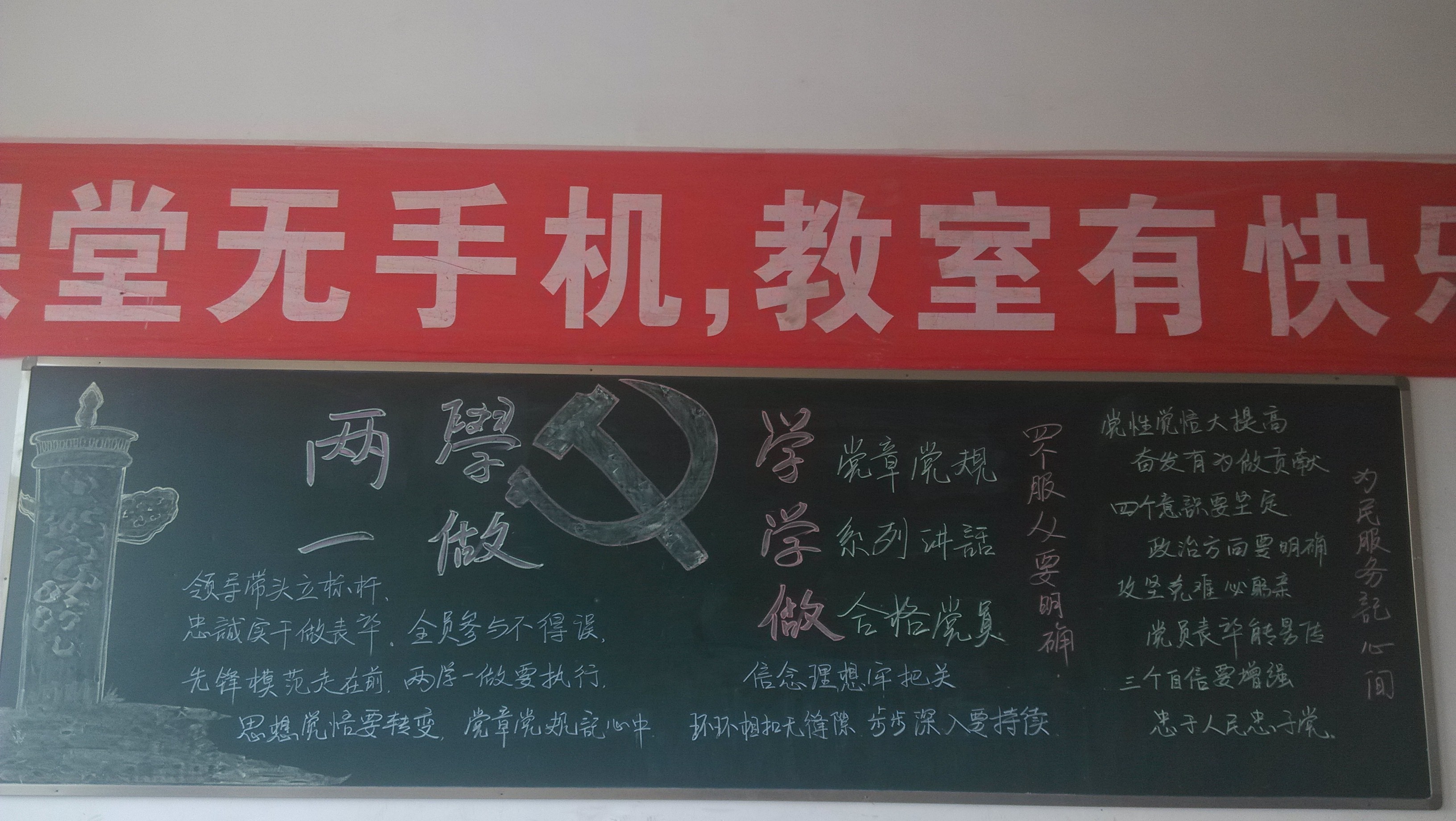 黑板報的形式多樣,內(nèi)容主要涉及黨章、黨史、兩學(xué)一做、總書記重要講話等方面,從視覺層面給我系全體師生黨員上了一次生動的黨課,營造出了濃濃的節(jié)日氣氛。