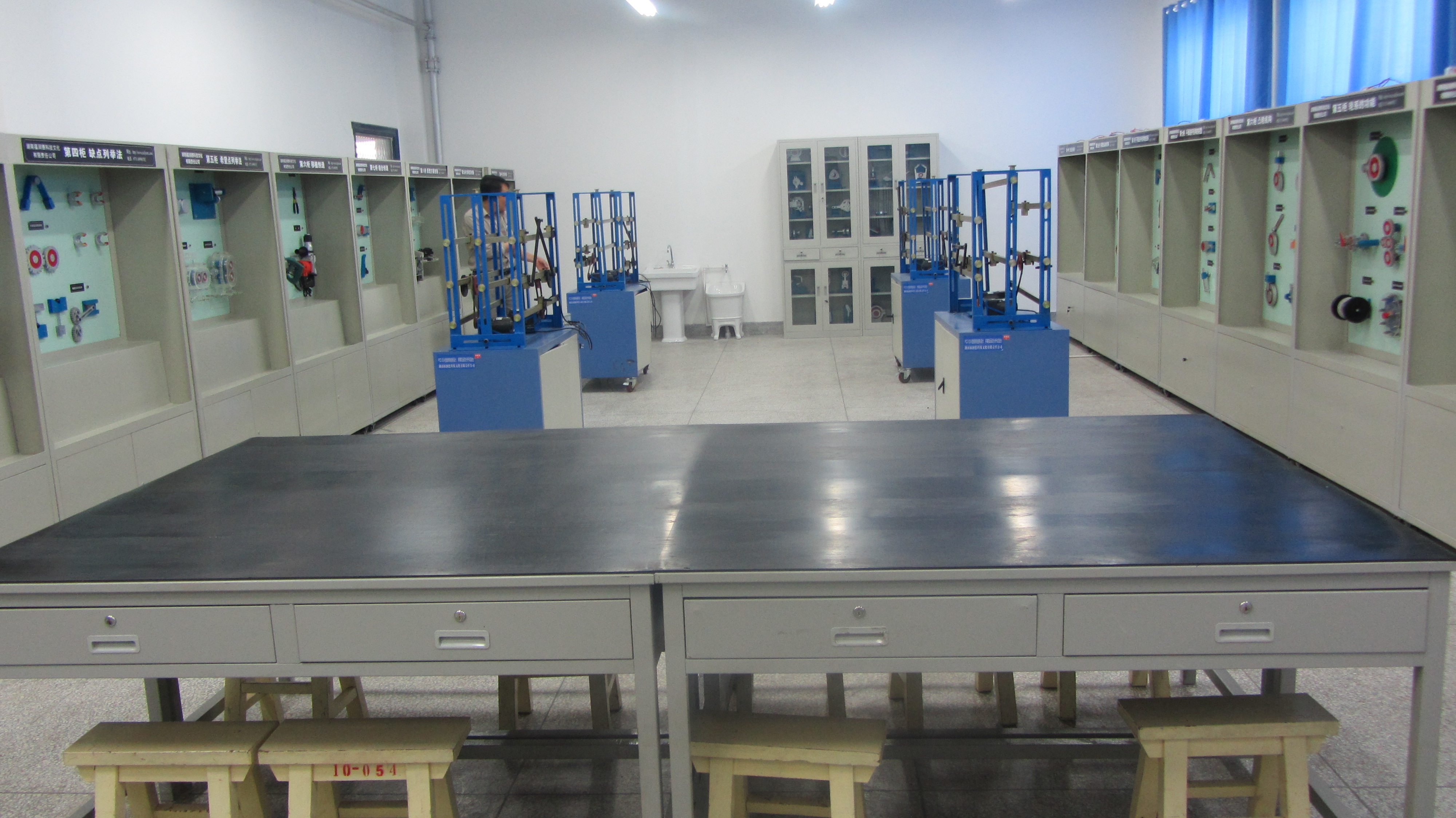 本實驗室主要由10組成套“機械原理” 陳列柜、10組成套“機械創(chuàng)新設計”陳列柜、4臺平面機構創(chuàng)意組合實驗臺和35套機構運動簡圖測繪模型組成。設備造價近20多萬元,實驗室能完成機械類及近機械類專業(yè)本、??茖W生《機械設計基礎》、《機械原理》、《機械設計》課程16個實驗項目。