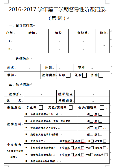教學(xué)督導(dǎo)室督導(dǎo)性檢查記載表