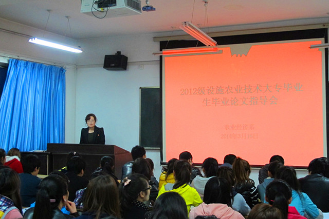 根據(jù)設施農(nóng)業(yè)技術專業(yè)人才培養(yǎng)方案要求,結合國家骨干校項目建設任務,為了提高2014屆設施農(nóng)業(yè)技術專業(yè)畢業(yè)生畢業(yè)論文(設計)質量,農(nóng)業(yè)經(jīng)濟系于3月16日晚召開了“2014屆大專畢業(yè)生畢業(yè)論文指導會”。全系教師及2012級設施農(nóng)業(yè)技術大專(1)、(2)班81名同學參加了本次會議。