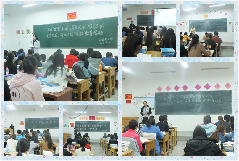 各班班會(huì)從什么是文明講起,聯(lián)系生活實(shí)際,講述校園文明、家庭文明和社會(huì)文明的重要性。各班主任首先向同學(xué)們闡述了對于當(dāng)代大學(xué)生來說,文明修身和專業(yè)學(xué)習(xí)同等重要,專業(yè)學(xué)習(xí)主要培養(yǎng)大學(xué)生的科學(xué)精神,而文明修身主要培養(yǎng)大學(xué)生的人文精神,二者缺一不可。通過講述身邊同學(xué)的故事,指出校園、家庭和社會(huì)上存在的不文明、不和諧現(xiàn)象,要求同學(xué)們對自身言行舉止進(jìn)行約束,共同攜手,提高自身文明行為,提升大家的思想道德和人文素質(zhì)。隨后,由同學(xué)們就“文明行為”發(fā)表了自己的看法,大家由主題聯(lián)想到自己身邊的一些不文明的行為,并就這些不文明行為發(fā)表了自己觀點(diǎn),同時(shí),同學(xué)們就如何提高自身道德素養(yǎng)、如何更好地做到文明修身提出了自己的建議和意見。經(jīng)過同學(xué)們的積極發(fā)言和認(rèn)真討論,大家認(rèn)為只有文明的個(gè)人才會(huì)有文明的班級團(tuán)體,才會(huì)有文明的校園,才會(huì)有和諧的社會(huì)。