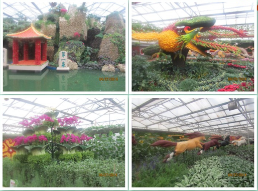蔬菜園藝廳為優(yōu)秀蔬菜景觀的集中營,五顏六色的種子、蔬菜、花卉及其他普通材料,在園藝師的手中演繹成氣勢恢弘、雄偉壯觀、形神兼?zhèn)?、意趣天成的藝術(shù)精品。其中主景點“美麗中國”將大明湖牌坊、蓬萊閣、五岳獨尊、孔子雕像、象鼻山、黃果樹瀑布、云岡石窟、嘉峪關(guān)、長白山瀑 布……30余個國內(nèi)知名人文及自然景點穿插其中。整個景點從遠(yuǎn)處看去,把祖國的大好河山、現(xiàn)代科技和鮮活蔬菜有機(jī)融為一體,凸顯著“綠色·科技·未來”的主題。