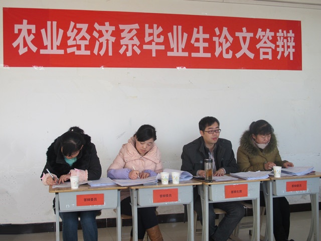 12月13日,農(nóng)業(yè)經(jīng)濟(jì)系進(jìn)行了2012級(jí)綠色食品生產(chǎn)與檢驗(yàn)大專(zhuān)班暨“2015屆畢業(yè)生畢業(yè)設(shè)計(jì)答辯工作”。本次參加我系畢業(yè)設(shè)計(jì)答辯的學(xué)生共有61人,完成論文33篇。