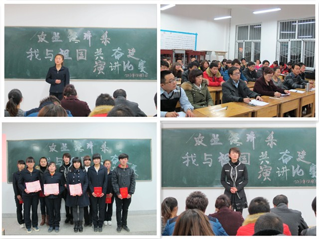 為紀(jì)念“12.9”學(xué)生愛國(guó)運(yùn)動(dòng)78周年,大力弘揚(yáng)愛國(guó)主義精神,進(jìn)一步增強(qiáng)廣大青年學(xué)子社會(huì)責(zé)任感與歷史使命感,展現(xiàn)我系學(xué)生朝氣蓬勃,奮發(fā)進(jìn)取的精神面貌,我系舉辦第三屆“我與祖國(guó)共奮進(jìn)”主題演講比賽。農(nóng)業(yè)經(jīng)濟(jì)系主任晏素珍、黨總支負(fù)責(zé)人蔡飛及系部教師觀看演講比賽并點(diǎn)評(píng)。