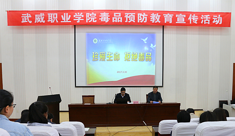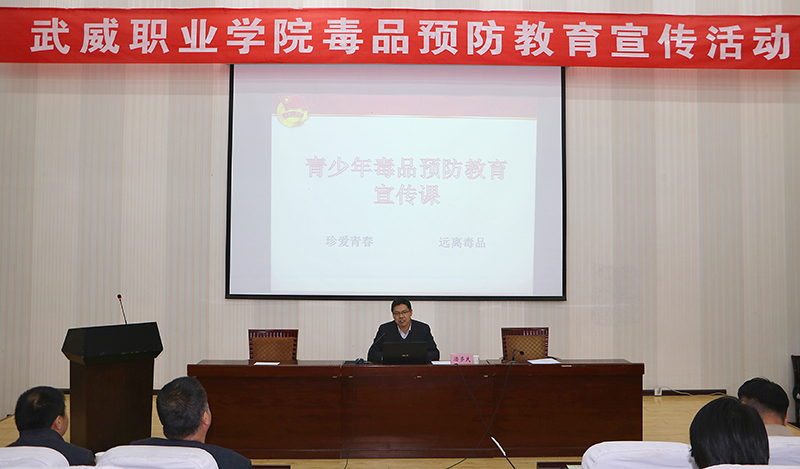 3月30日下午,院團(tuán)委聯(lián)合學(xué)生工作處、保衛(wèi)處在正德廳舉辦武威職業(yè)學(xué)院毒品預(yù)防教育宣傳活動(dòng),團(tuán)市委書記潘多民出席活動(dòng)并授課,學(xué)院各級團(tuán)干部270多人參加了活動(dòng)?;顒?dòng)由學(xué)生工作處處長王守云主持。