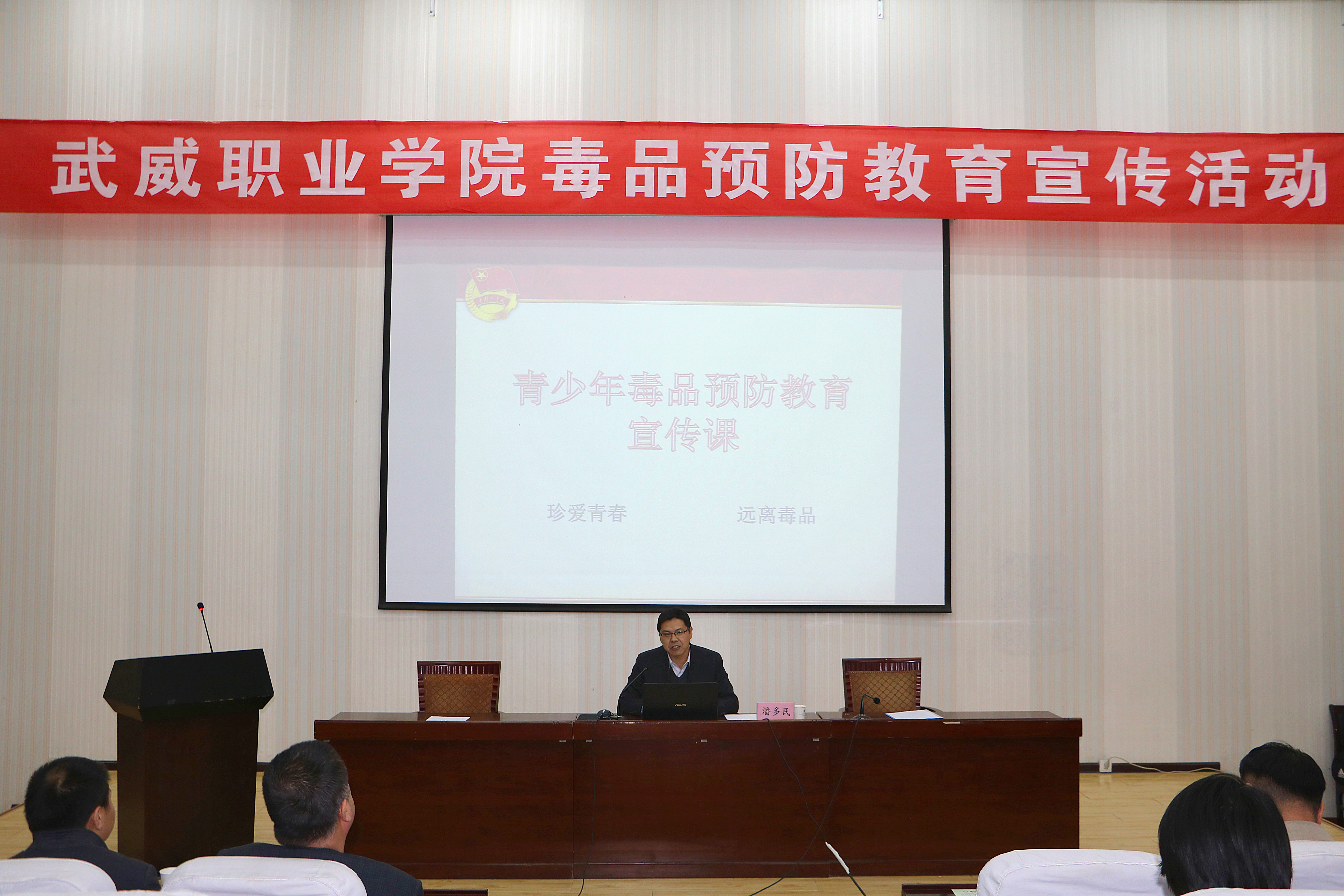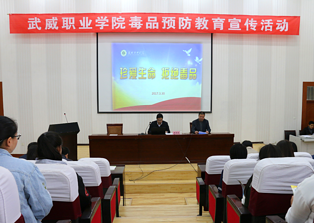 3月30日下午,院團委聯(lián)合學(xué)生工作處、保衛(wèi)處在正德廳舉辦武威職業(yè)學(xué)院毒品預(yù)防教育宣傳活動,團市委書記潘多民出席活動并授課,學(xué)院各級團干部270多人參加了活動?;顒佑蓪W(xué)生工作處處長王守云主持。