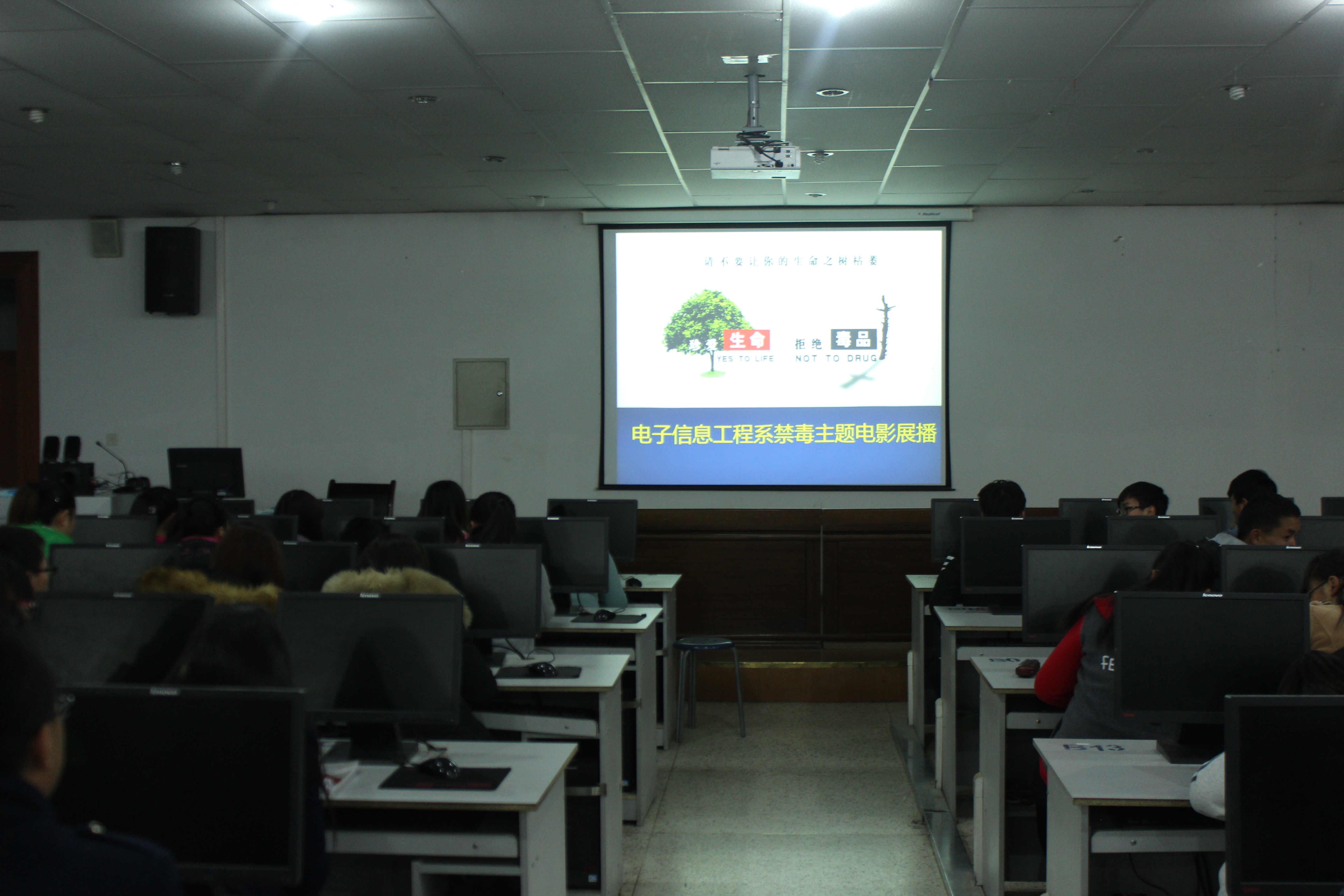 為進(jìn)一步提高大學(xué)生的禁毒意識(shí)和拒毒能力,切實(shí)加強(qiáng)毒品預(yù)防教育,貫徹落實(shí)《武威職業(yè)學(xué)院關(guān)于開(kāi)展禁毒“五個(gè)一”活動(dòng)的通知》的要求,12月2日晚8時(shí),電子信息工程系組織學(xué)生代表200余人在尚德樓十一號(hào)機(jī)房觀看毒品危害的主題電影。