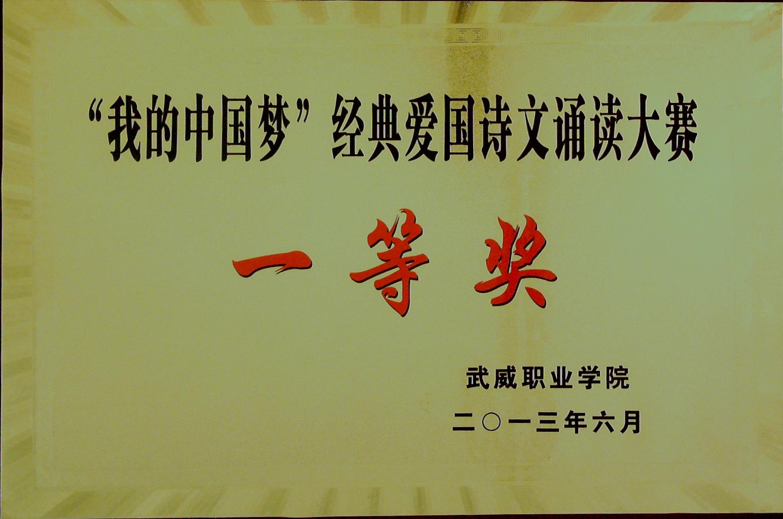 “我的中國(guó)夢(mèng)”經(jīng)典愛國(guó)詩(shī)文誦讀大賽一等獎(jiǎng)