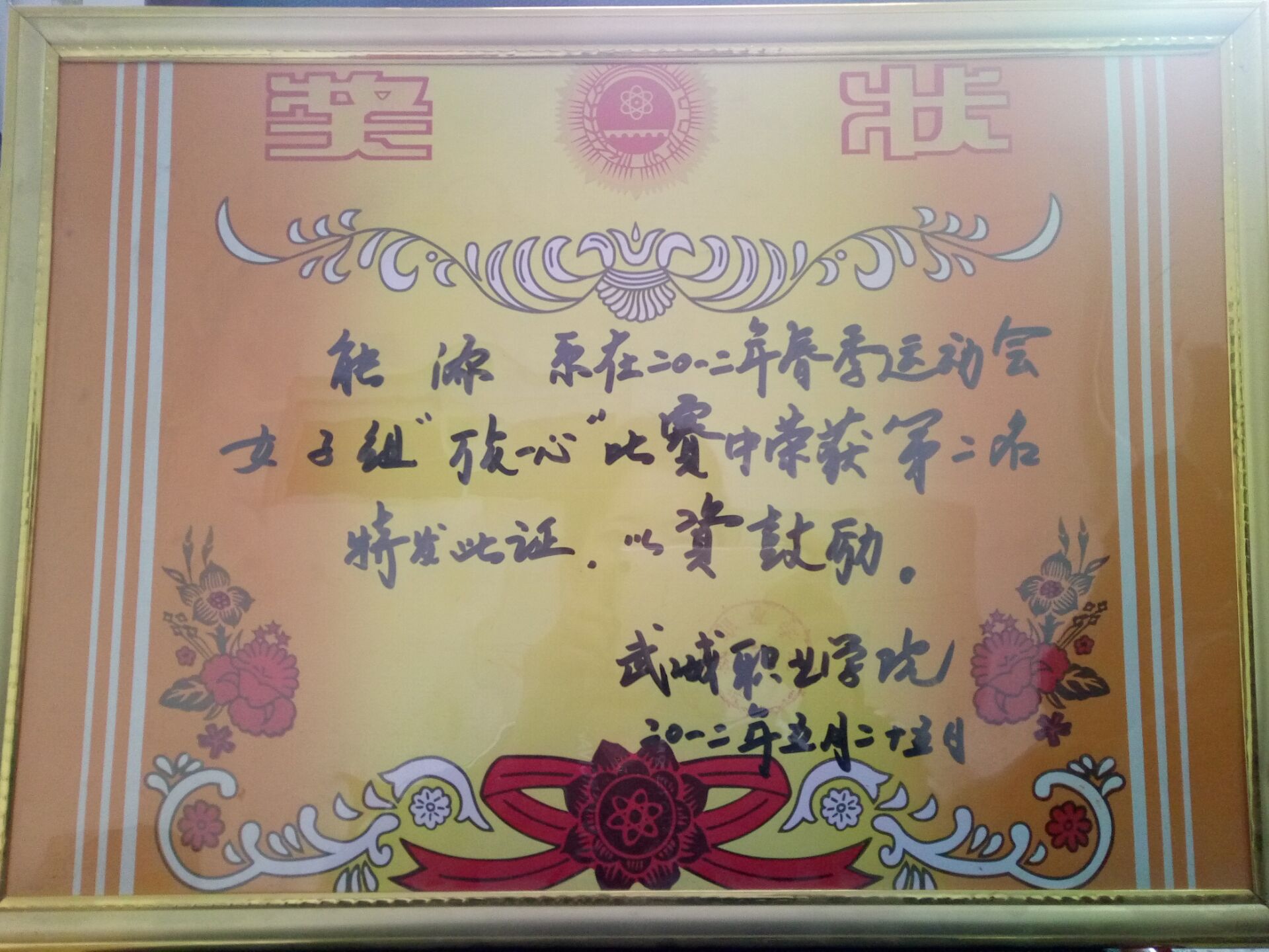 我系代表隊在2012年春季運動會“團結(jié)一心”比賽榮獲第二名